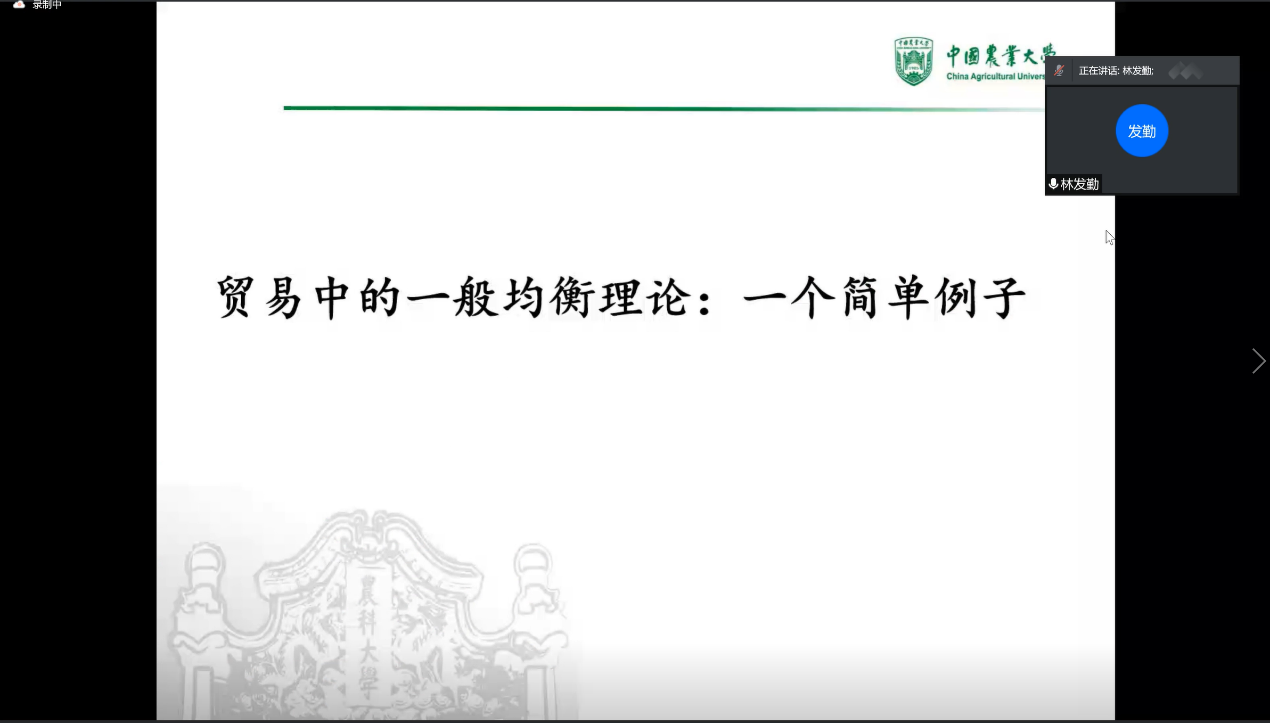 2021年9月30日下午两点,中国农业大学437必赢会员中心林发勤教授受邀为我校师生作了题为“国际贸易研究前沿概述”的线上学术报告,吸引了师生的广泛关注,学院师生代表90余人参加了报告会。