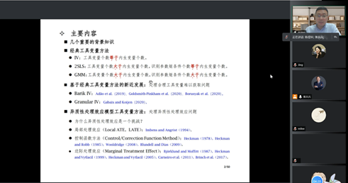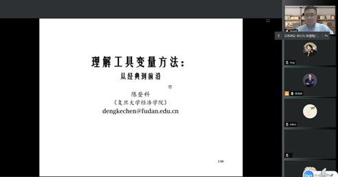 陈登科教授对计量经济学理论有着高屋建瓴式的理解,并在本次报告中进行了鞭辟入里的讲解。整个线上报告持续两个小时,报告内容理论丰富,内容详实,让在座师生都受益匪浅。在提问环节,多位师生根据自身所遇到的计量经济学问题进行提问,陈登科教授首先高度赞扬了我校师生的提问深度与水平,并一一进行了详实的回答,线上报告和交流互动热烈。最后,张兵兵副教授对本次报告进行了总结。