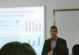12月18日下午,美国康奈尔大学Miguel I. Gomez教授在第三实验楼1101教室为我院师生做题为《Emerging Research Issues in Food Marketing and Distribution: Current research efforts and future areas of promising research》的报告,学院师生代表30余人参加了报告会,报告会由刘爱军副教授主持。