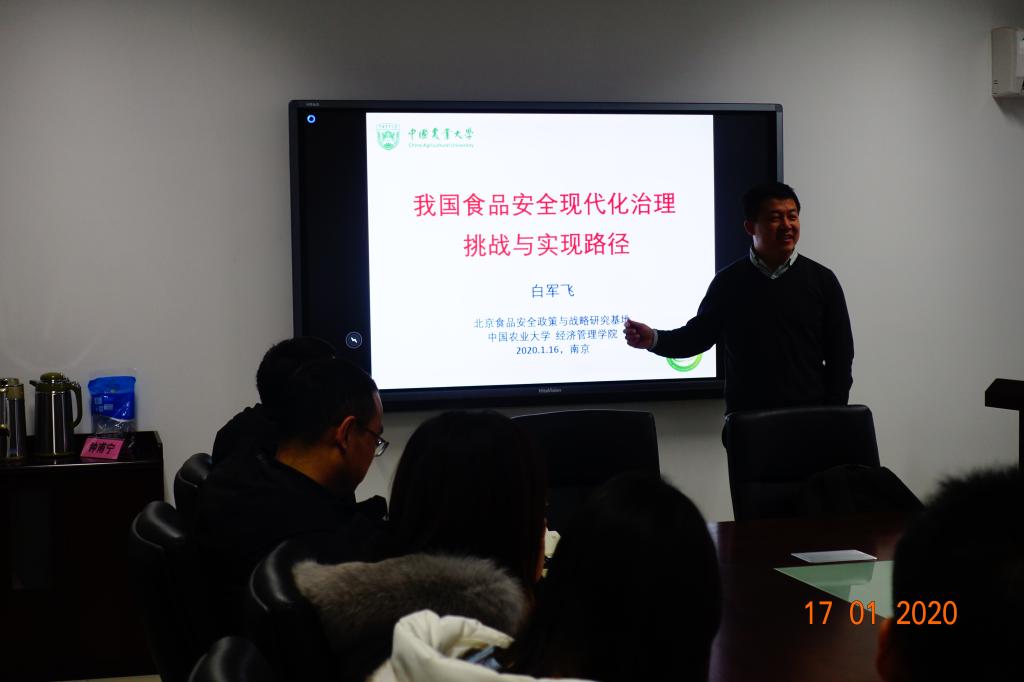 1月16日上午,中国农业大学白军飞教授在第三实验楼713教室为我院师生做题为《关于我国食品安全现代化治理系统和治理能力的思考》的报告,学院师生代表30余人参加了报告会,报告会由副院长耿献辉主持。