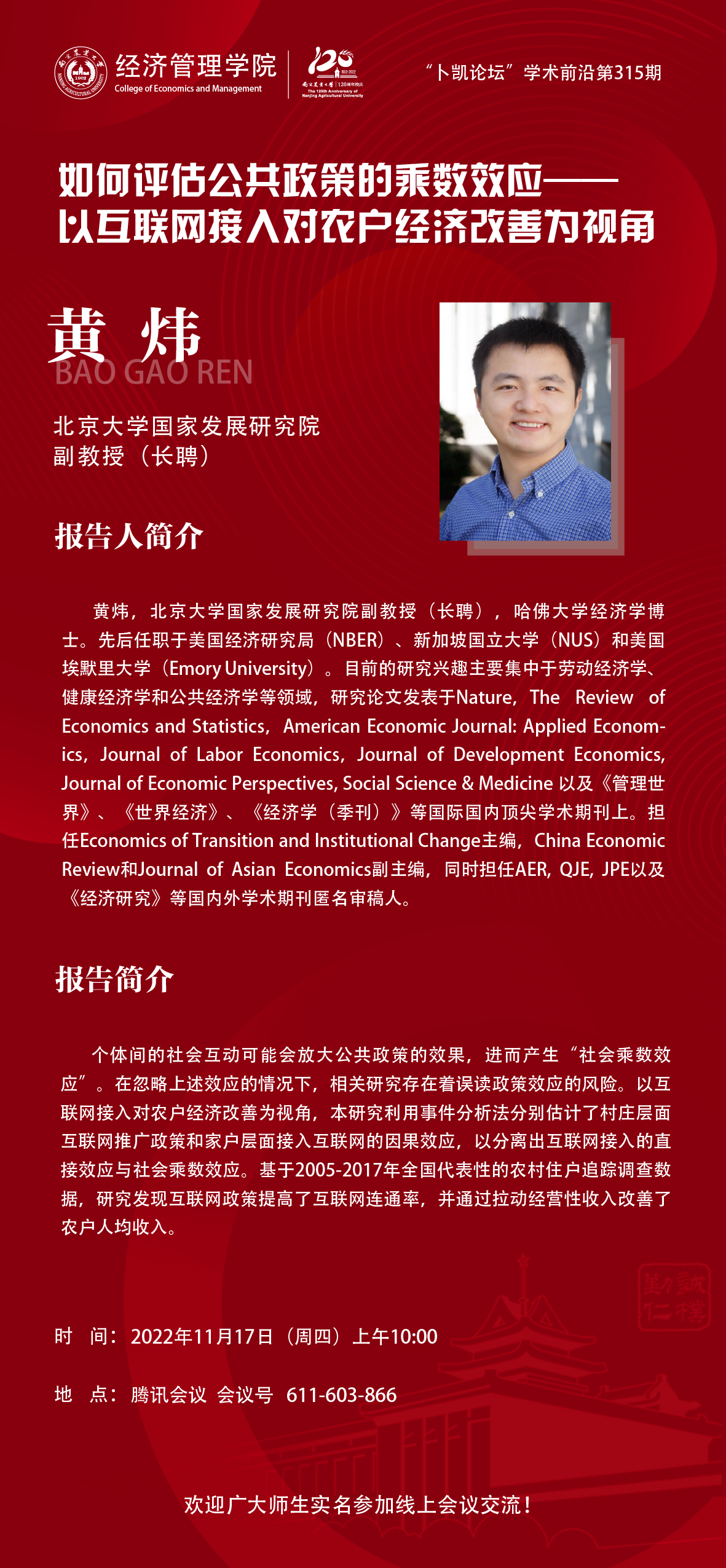 地 点:腾讯会议ID:611-603-6866