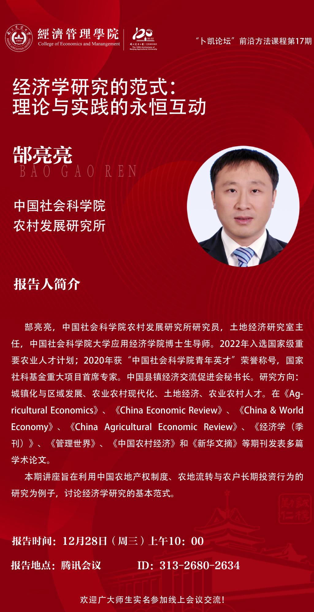 百廿校庆学术论坛——卜凯论坛•前沿方法课程 第17期