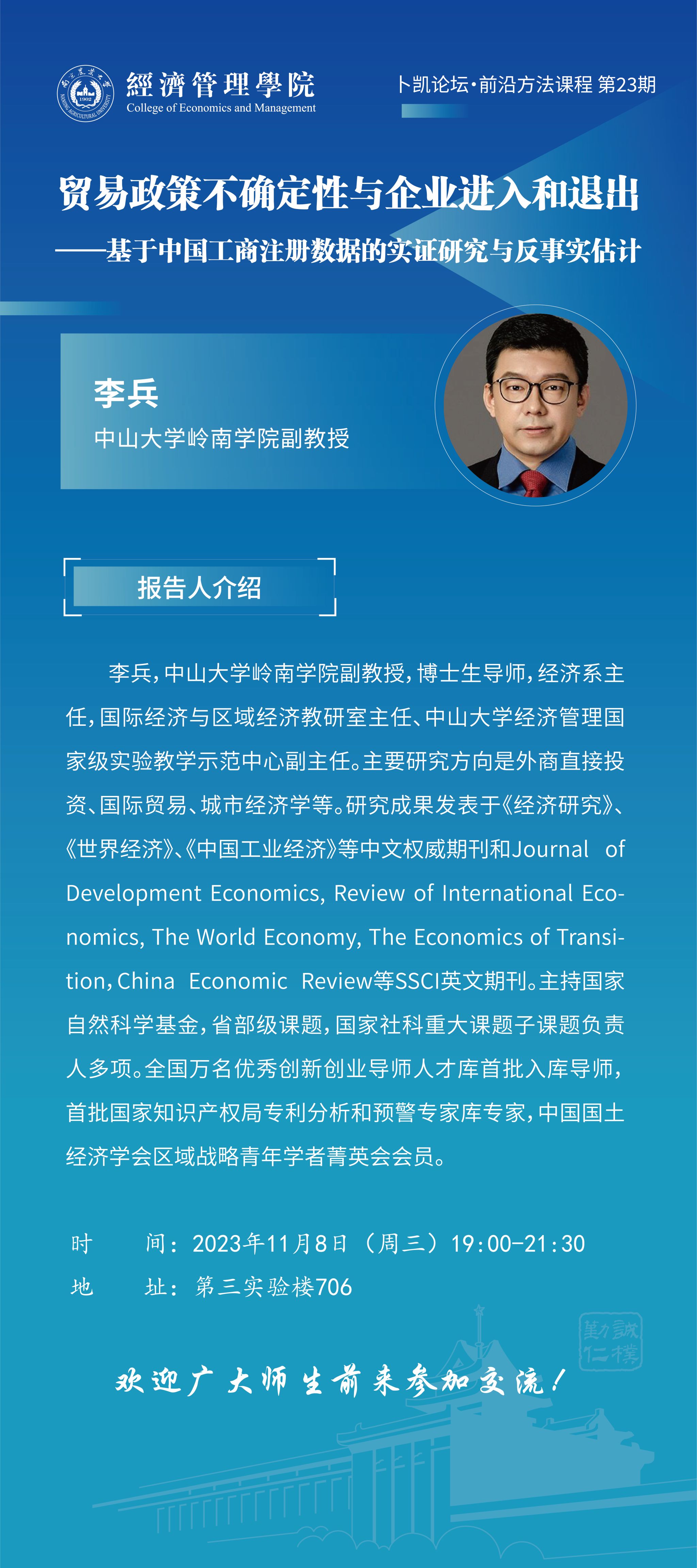 437必赢会员中心——卜凯论坛•前沿方法课程 第23期