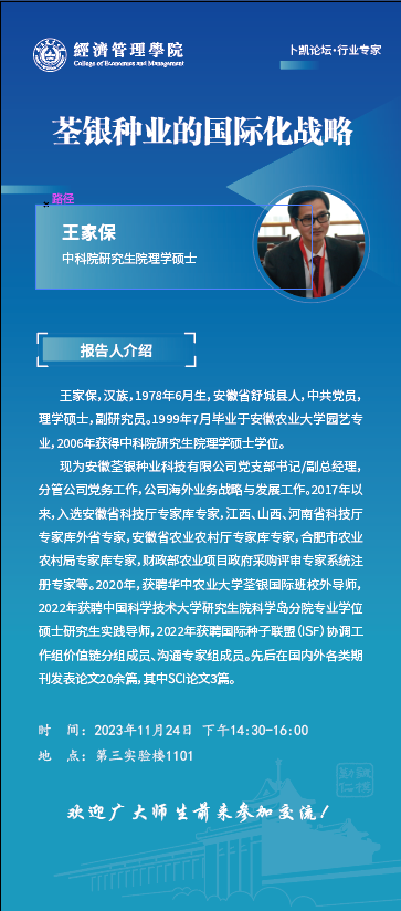 安徽荃银种业科技有限公司王家保副总经理应邀为我院师生做行业报告