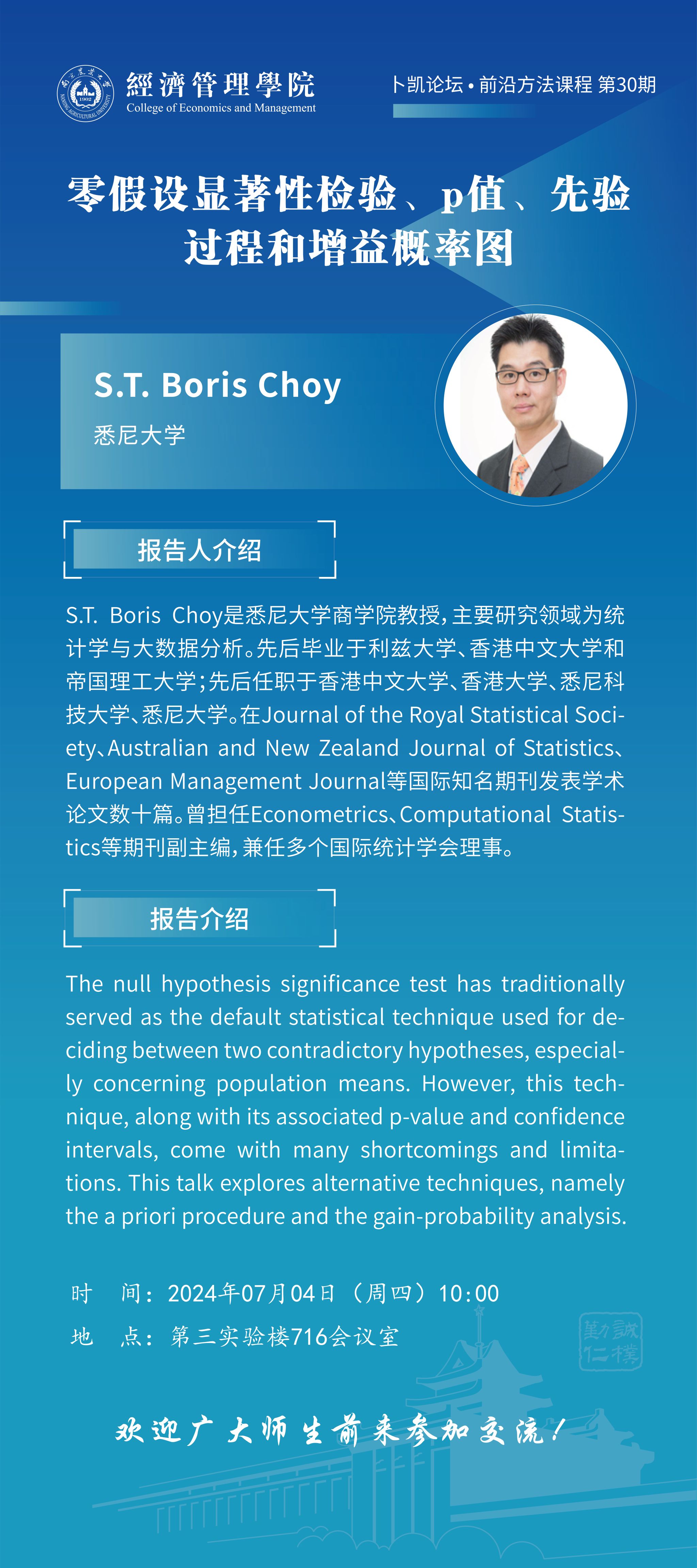 报告人:S.T.Boris Choy 悉尼大学