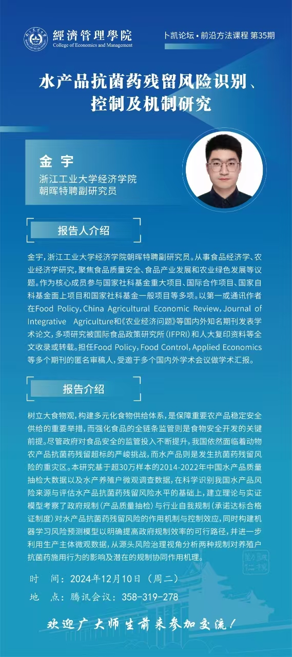 题 目:水产品抗菌药残留风险识别、控制及机制研究