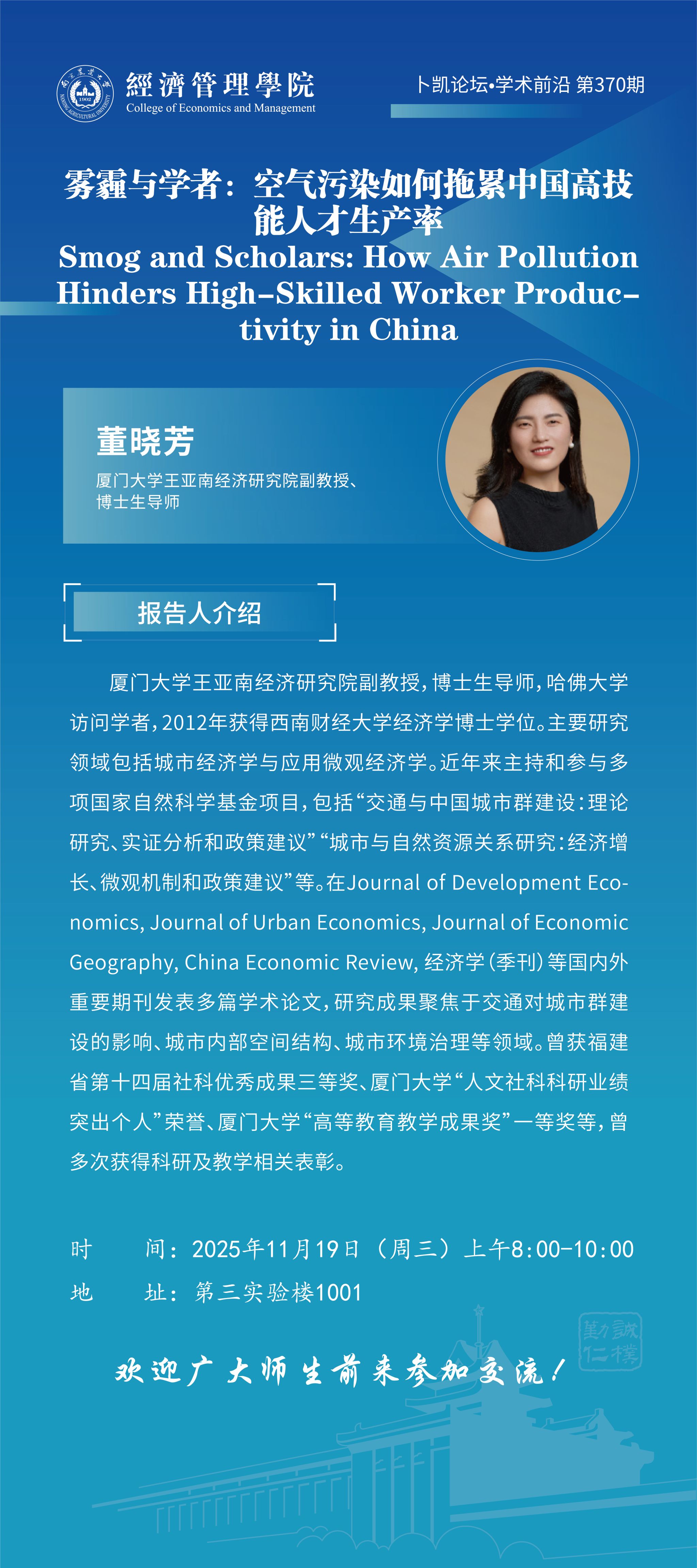 题目:雾霾与学者:空气污染如何拖累中国高技能人才生产率