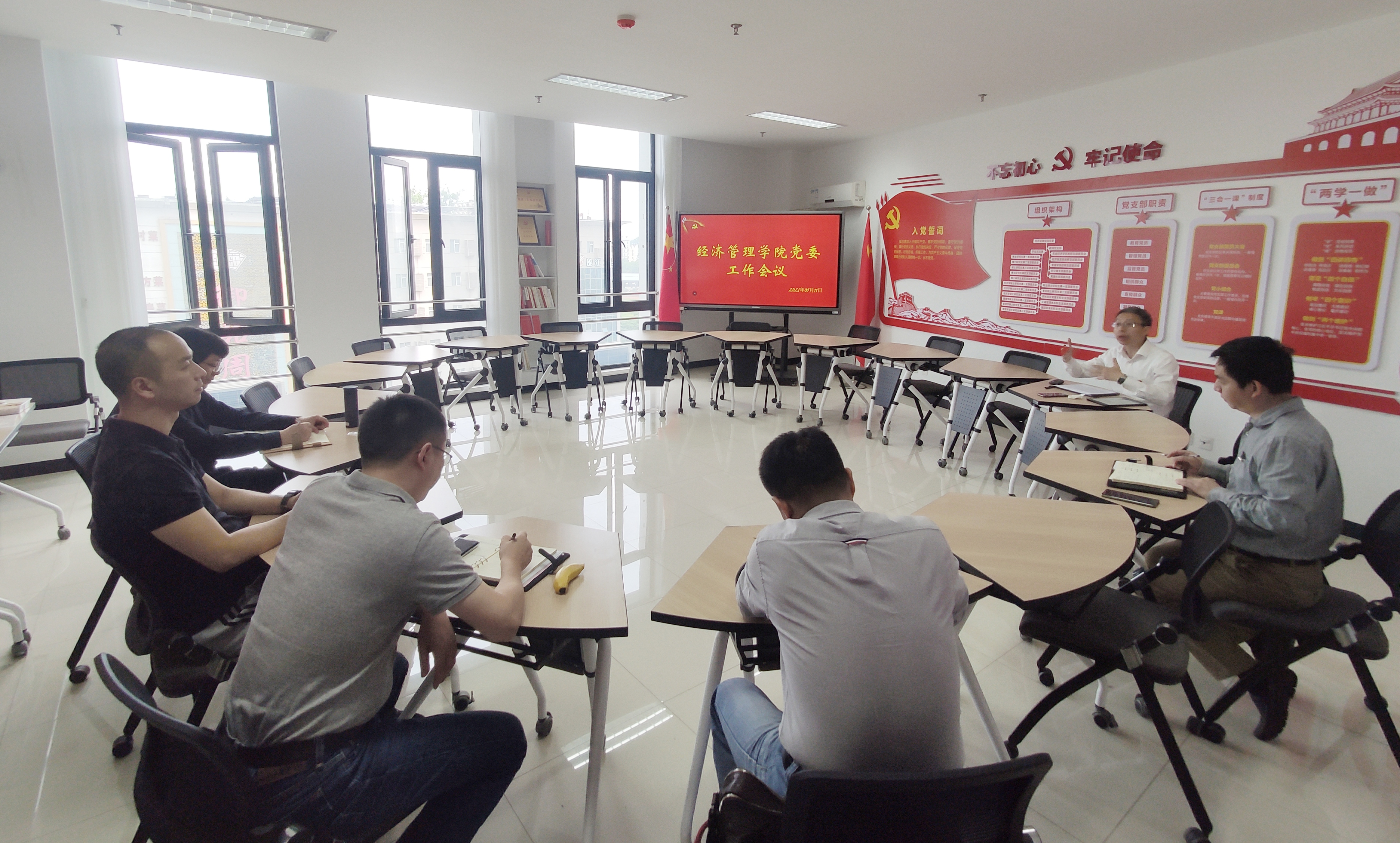 2021年5月11日,437必赢会员中心党委召开工作会议。院党委书记姜海主持会议,党委委员耿献辉、林光华、徐志刚、周力、展进涛参加会议。