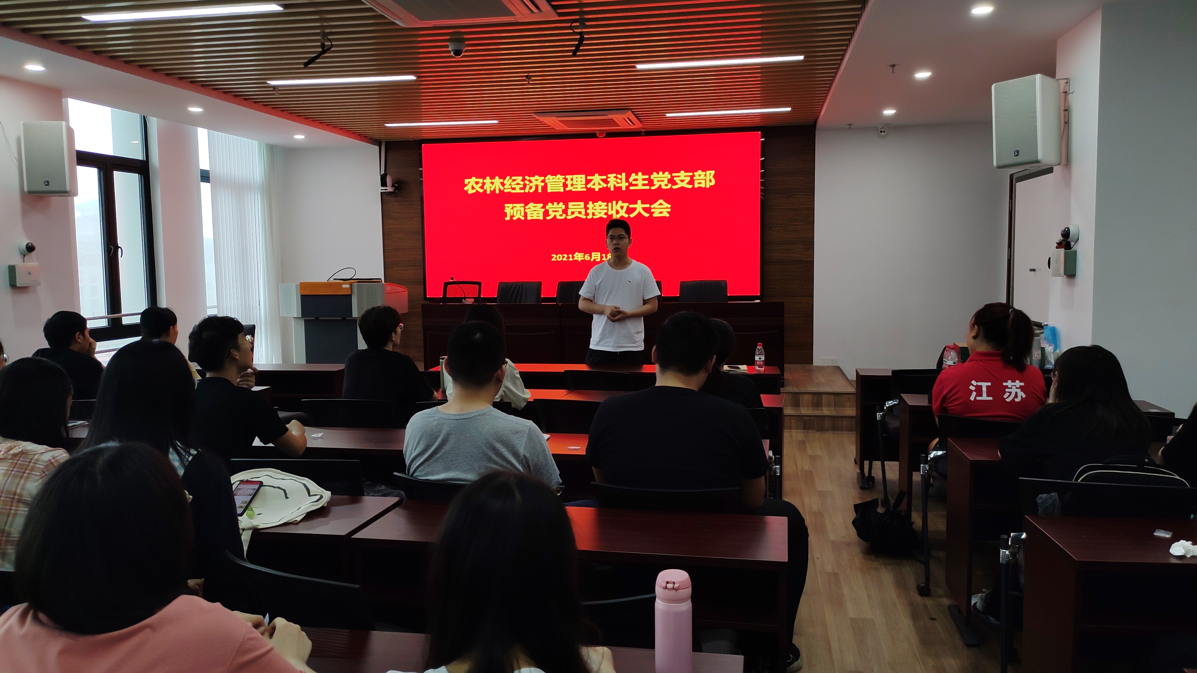 6月18日中午,农林经济管理本科生党支部在第三实验楼706召开支部党员大会,讨论预备党员的接收事宜。会上孙冉等13名发展对象围绕自身情况、入党动机、对党的认识三个方面进行了陈述。经过无记名投票表决,同意接收孙冉等13名同志为中共预备党员。