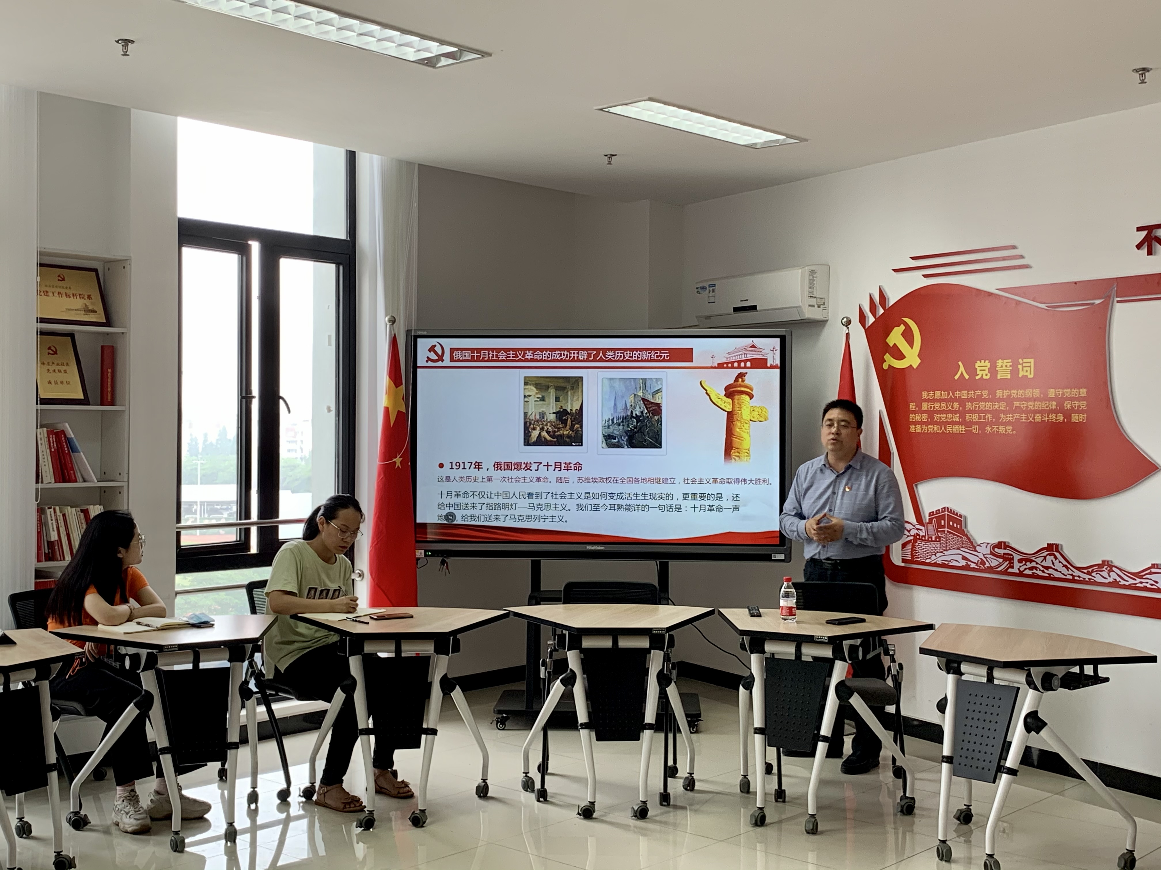 在全面推进“学党史,忆峥嵘,筑信仰,担使命”成长计划的基础上,国际贸易本科生党支部还深入开展党史学习教育,创新党史学习形式。支部的党史领学规划是以党的创建和发展为主线,结合领学党员自身的思考,为我们勾勒出党百年风雨、百年辉煌。党支部还邀请院党委副书记宋俊峰领学新民主主义革命史,以时间为线,讲述了新民主主义的含义、背景、四个阶段和意义,使支部党员又一次深刻领会了习近平总书记“学习国史党史是必修课”指示的重要内涵。