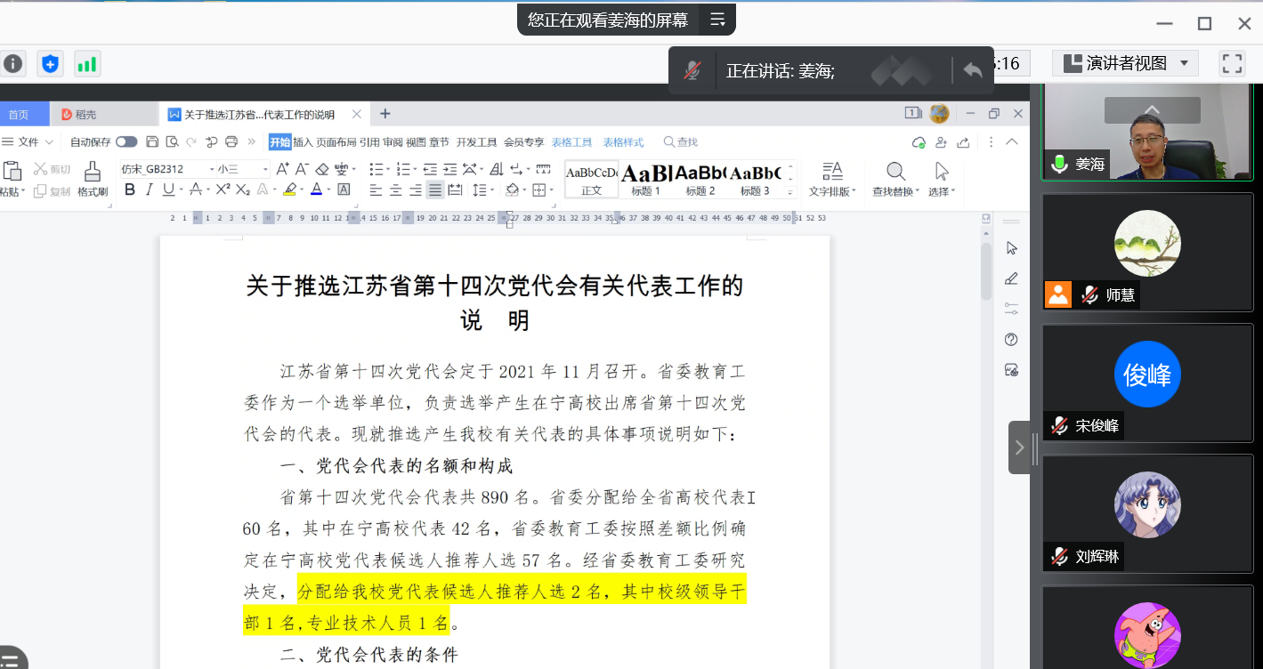 会上,姜海传达了学校相关会议精神,安排部署了学院关于江苏省第十四次党代会代表候选人推荐、在宁高校党代表会议代表推选相关工作;对疫情期间党支部工作开展提出了意见及建议。