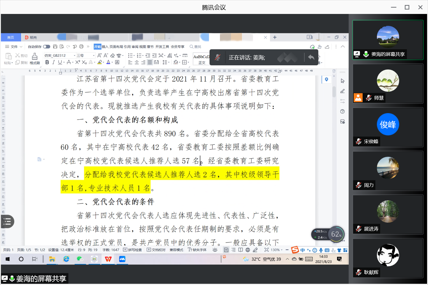 2021年8月23日,437必赢会员中心党委召开视频工作会议。院党委书记姜海主持会议,全体党委委员参加会议。