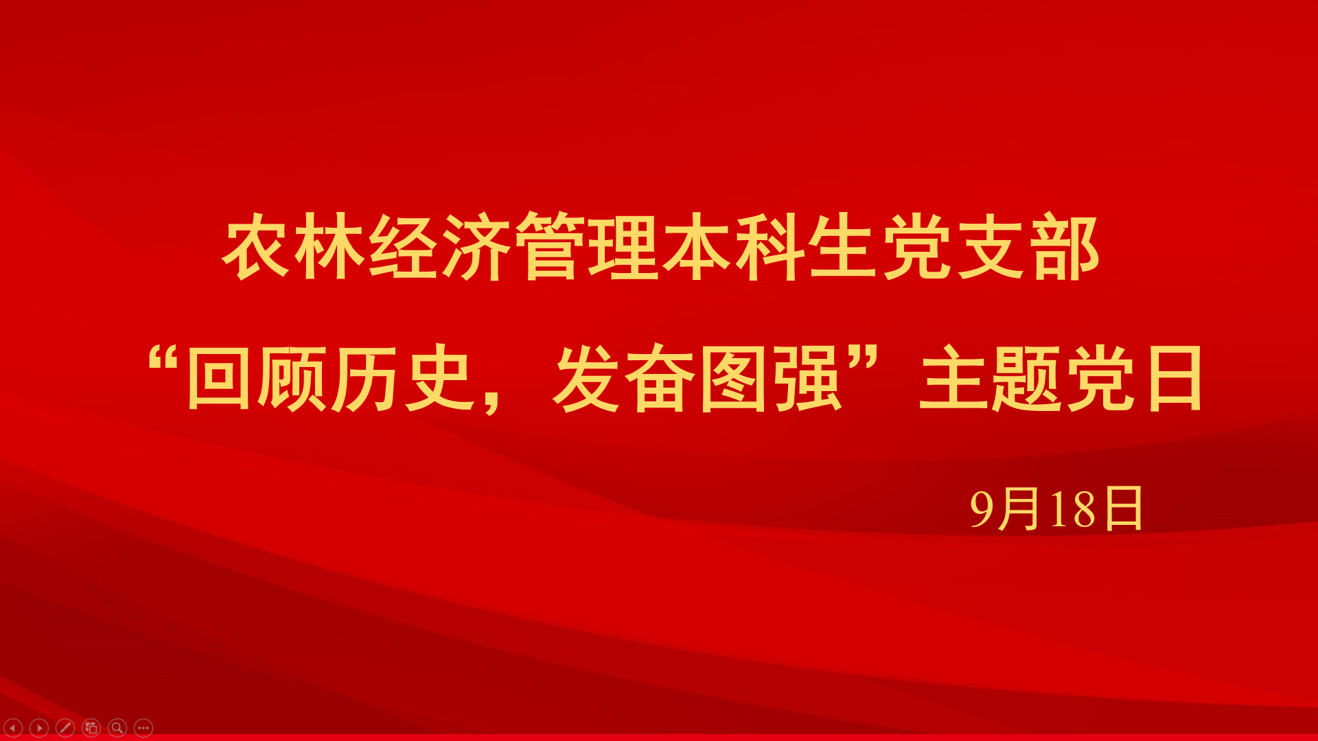 2021年9月18日是“九一八”事变90周年纪念日。中午,农林经济管理本科生党支部于线上腾讯会议召开“回顾历史,发奋图强”主题党日。