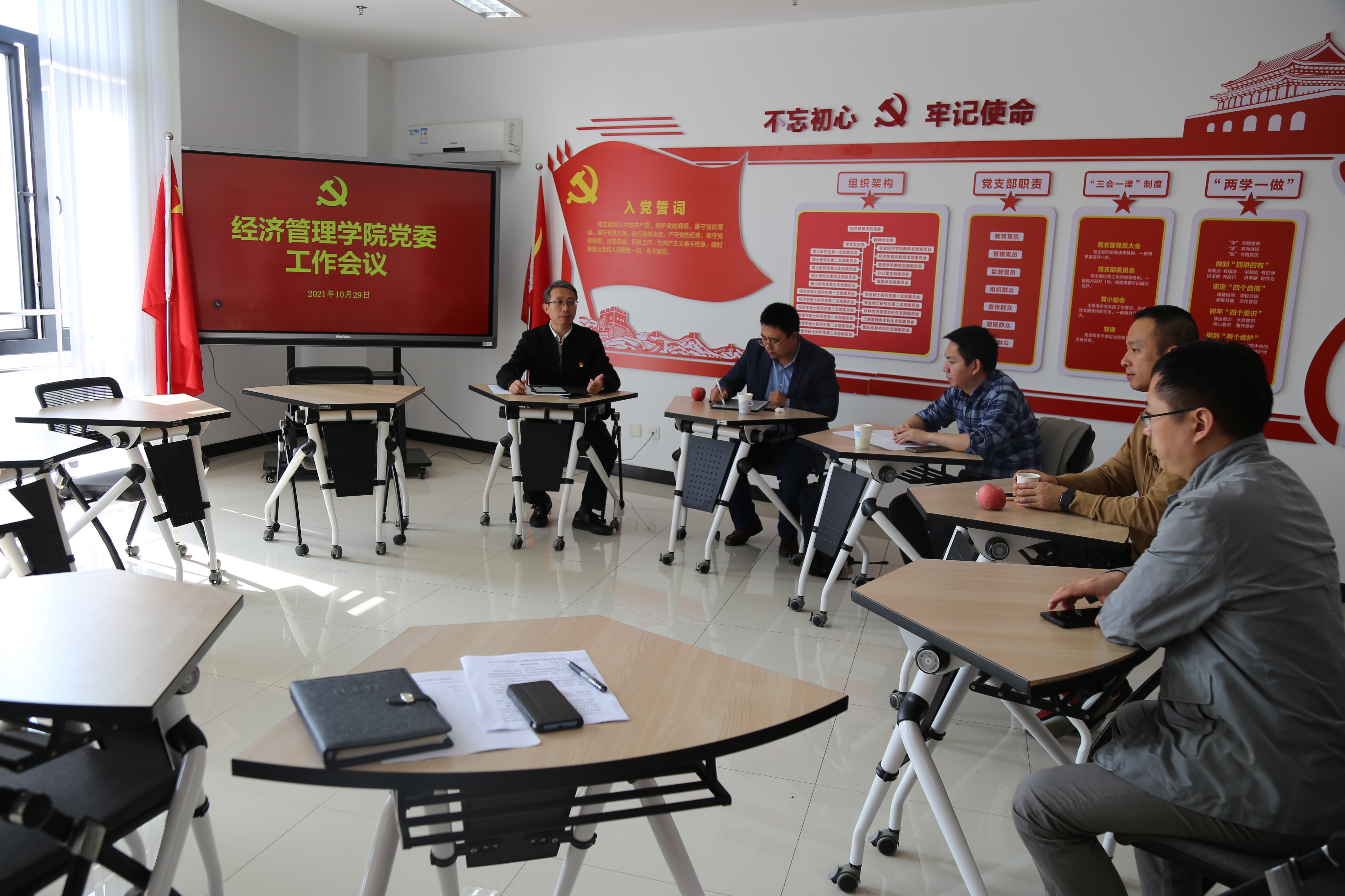 2021年10月29日,437必赢会员中心党委召开工作会议。院党委书记姜海主持会议,党委副书记宋俊峰,党委委员林光华、周力、展进涛等出席会议,办公室主任夏德峰列席会议。