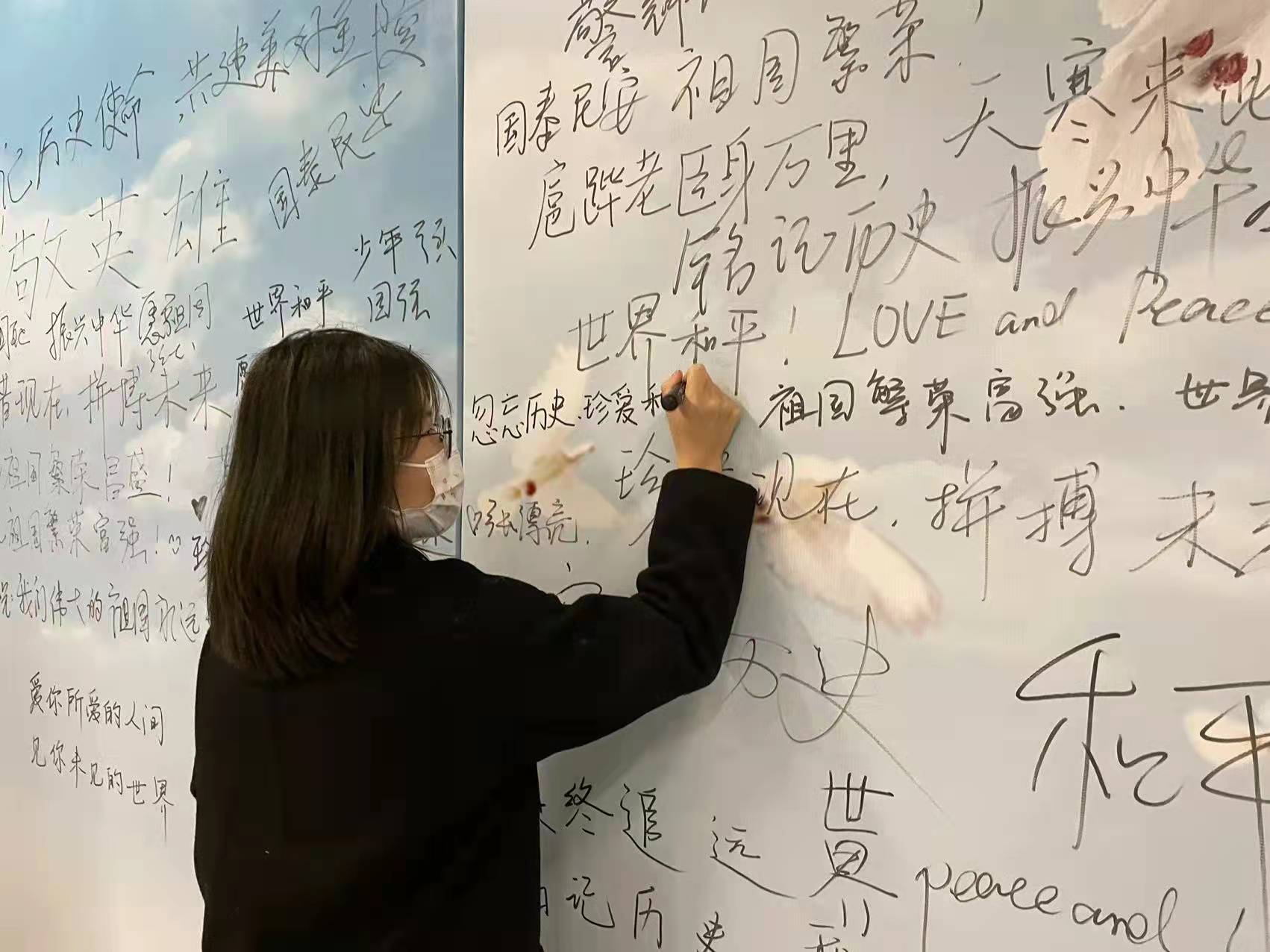 学习结束后,各位党员同志分别前往地铁站云锦路站、鸡鸣寺站、金马路站、岗子村站,参与签名悼念活动。“前事之不忘,后事之师。”各位党员同学写下铭记历史的决心,珍惜和平的祈愿,自强不息的志向。
