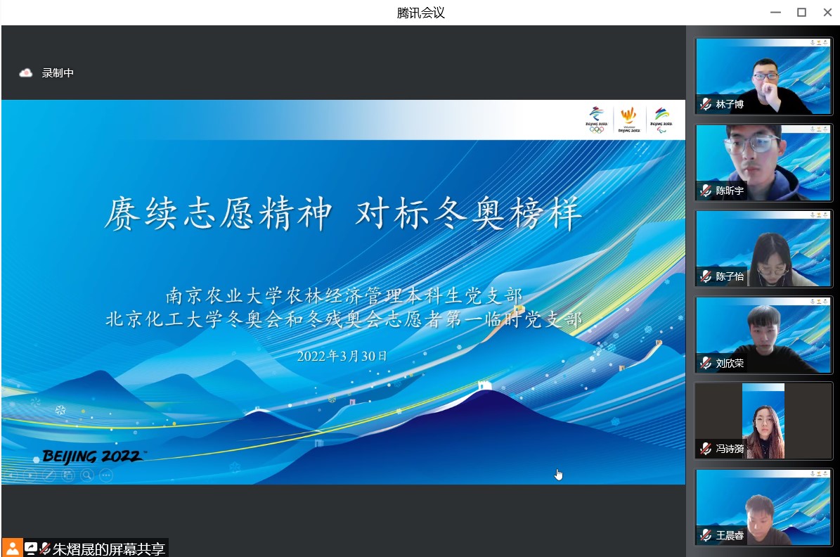 为进一步弘扬志愿服务精神,激发党建活力,提升青年党员的价值认同及自我实现,近日,农林经济管理本科生党支部与北京化工大学冬奥会和冬残奥会志愿者第一临时党支部联合开展了“赓续志愿精神,对标冬奥榜样”线上主题党日。