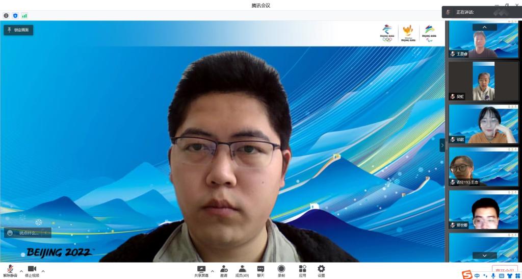最后,支部书记朱熠晟强调:作为共产党员,应当时刻牢记使命,向先进榜样学习;要结合学习生活实际,在实践中深刻理解北京冬奥精神,传承和弘扬好志愿服务精神,在奉献中绽放青春。