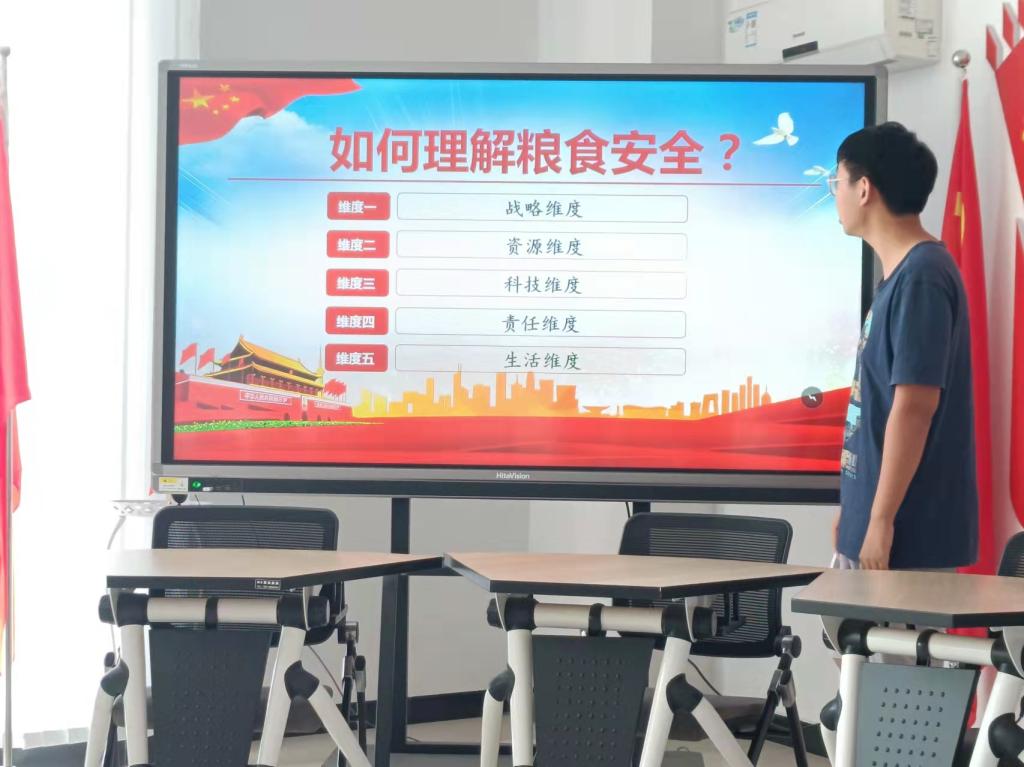 首先,全体党员对习近平总书记在《论“三农”工作》中提出的指导方针、意见和要求认真进行了学习,随后观看相关视频,深刻理解“增加农民收入是‘三农’工作的中心任务”这一具体要求;其次,李强同学从粮食安全角度阐述了自己的观点,他认为要积极发挥粮食主产区的主阵地、压舱石作用,完善粮食主产区利益补偿机制,重点关照粮食企业,促进我国粮食产业发展。王宁同学选取《论“三农”工作》中有关乡村产业发展的论述,并从“推进农产品加工向产地下沉、向中心镇(乡)和物流节点聚集、向重点专业村聚集、向园区集中”四个方向分享了自己的观点和感悟。