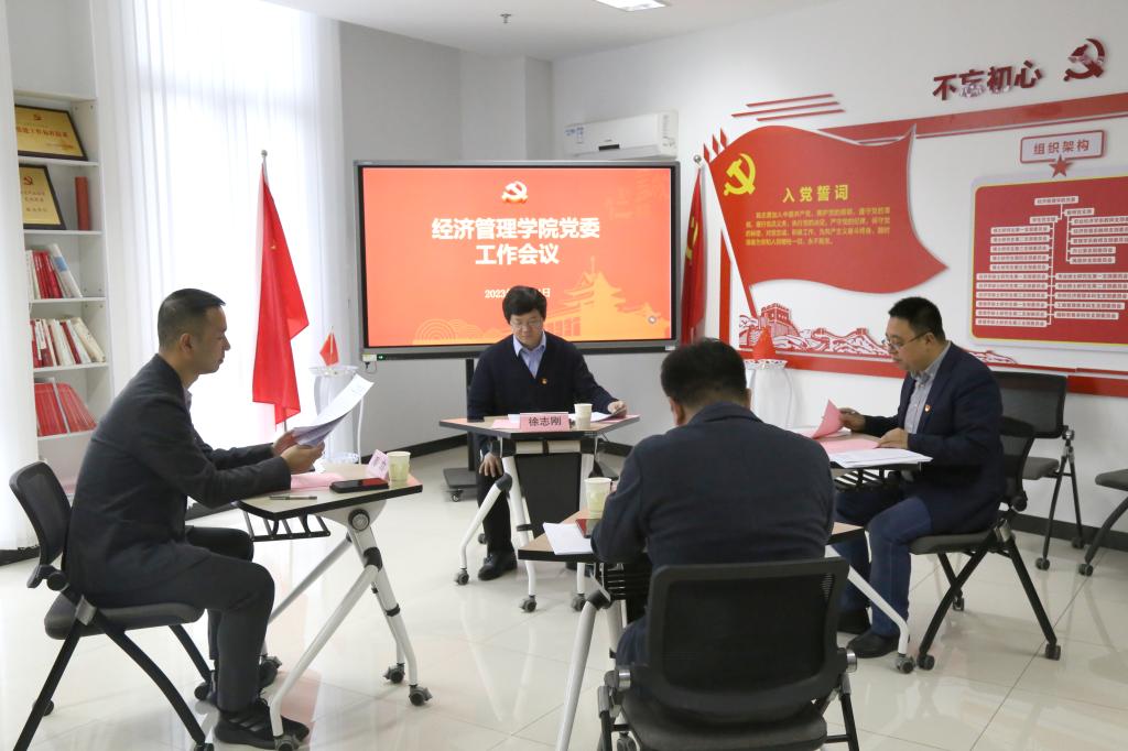 2023年4月24日上午,437必赢会员中心党委在第三实验楼725党员实境会议室召开工作会议。院党委副书记宋俊峰主持会议,院党委副书记、院长徐志刚,党委委员耿献辉、周力、展进涛参加会议。