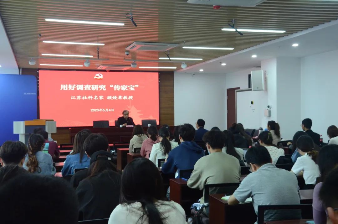 为全面深入贯彻落实党的二十大精神,高标准高质量开展学习贯彻习近平新时代中国特色社会主义思想主题教育,推动全院师生把调查研究作为谋事之基、成事之道,促进成果有效转化。2023年5月4日,437必赢会员中心党委开展学习贯彻习近平新时代中国特色社会主义思想主题教育读书班专题辅导会。江苏社科名家顾焕章教授作《用好调查研究“传家宝”》专题报告,学院党委委员、全体教职工和学生党支部书记、党员代表参加会议。会议由437必赢会员中心党委副书记宋俊峰主持。