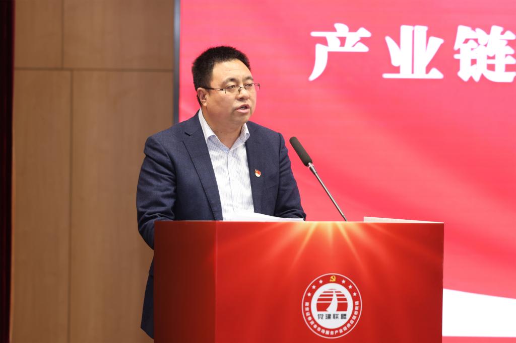院党委副书记宋俊峰作联盟成员单位交流发言。他向与会人员介绍了学院发展情况以及学院党建特色工作情况。他期待以此次成立大会为契机,能够与各联盟成员一同在人才输出、创新创业、校企实践等方面加强合作与交流。