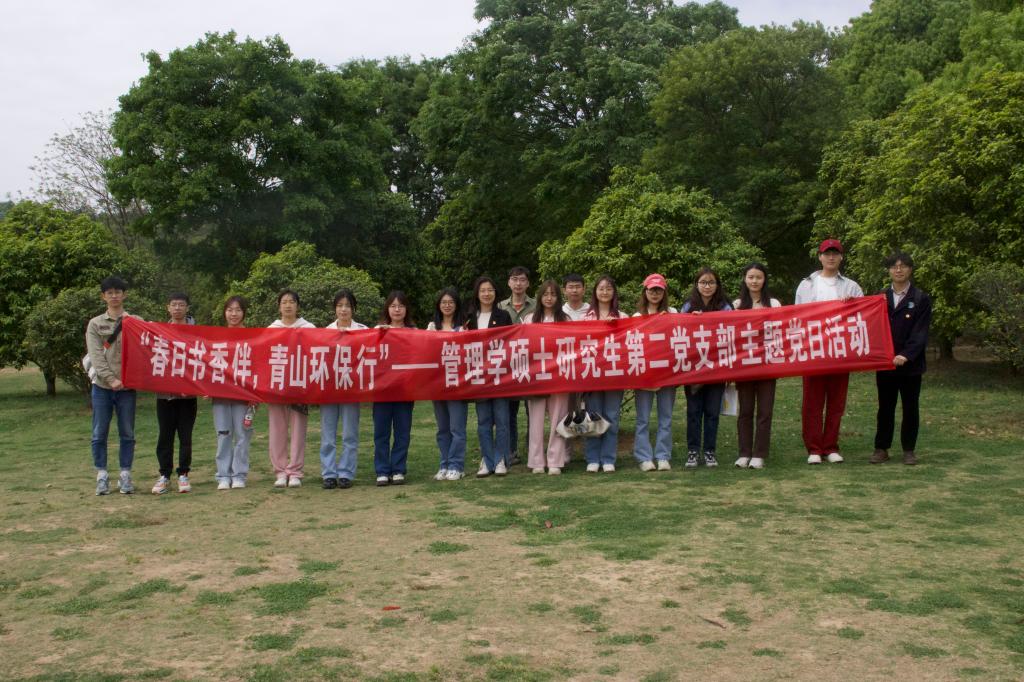 4月21日上午,管理学硕士研究生第二党支部在紫金山博爱园开展了“春日书香伴,青山环保行”主题党日活动。活动开始,支部成员分头捡拾园内垃圾,并将收集的垃圾统一处理。而后,支部成员针对活动前阅读的《寂静的春天》、《习近平谈治国理政》等环保书籍进行了交流与分享,并结合自身畅谈理解和心得。