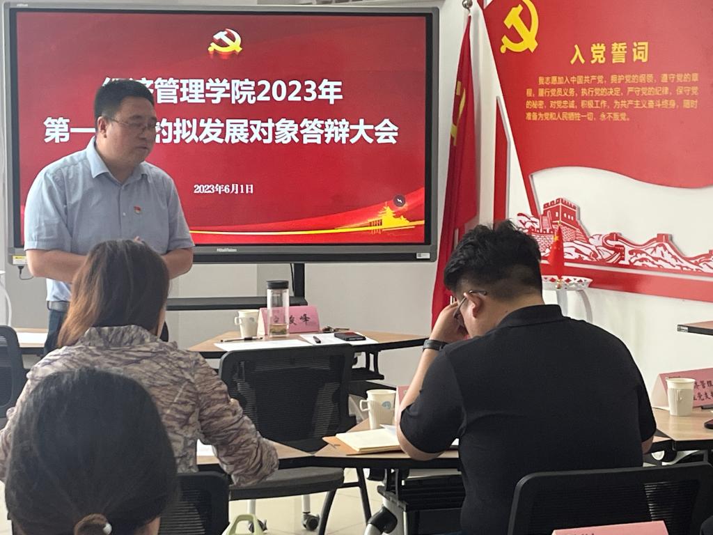 2023年6月1日,437必赢会员中心2023年第一批党的拟发展对象答辩大会于第三实验楼党员实境教室举行。学院党委副书记宋俊峰、各党支部书记出席会议。33位2023年上半年拟发展对象参与此次答辩。
