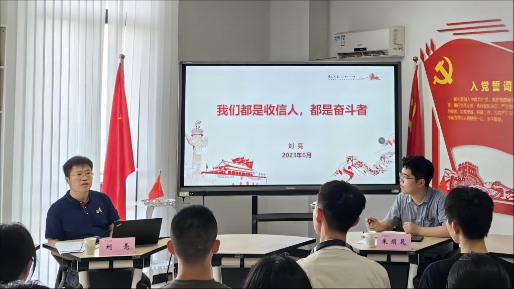 刘亮、朱熠晟为2023届同志赠予毕业寄语。他们共同希望毕业生党员同志始终坚持积极参与组织活动,重视理论素养学习,加强党性修养,永葆共产党员底色。