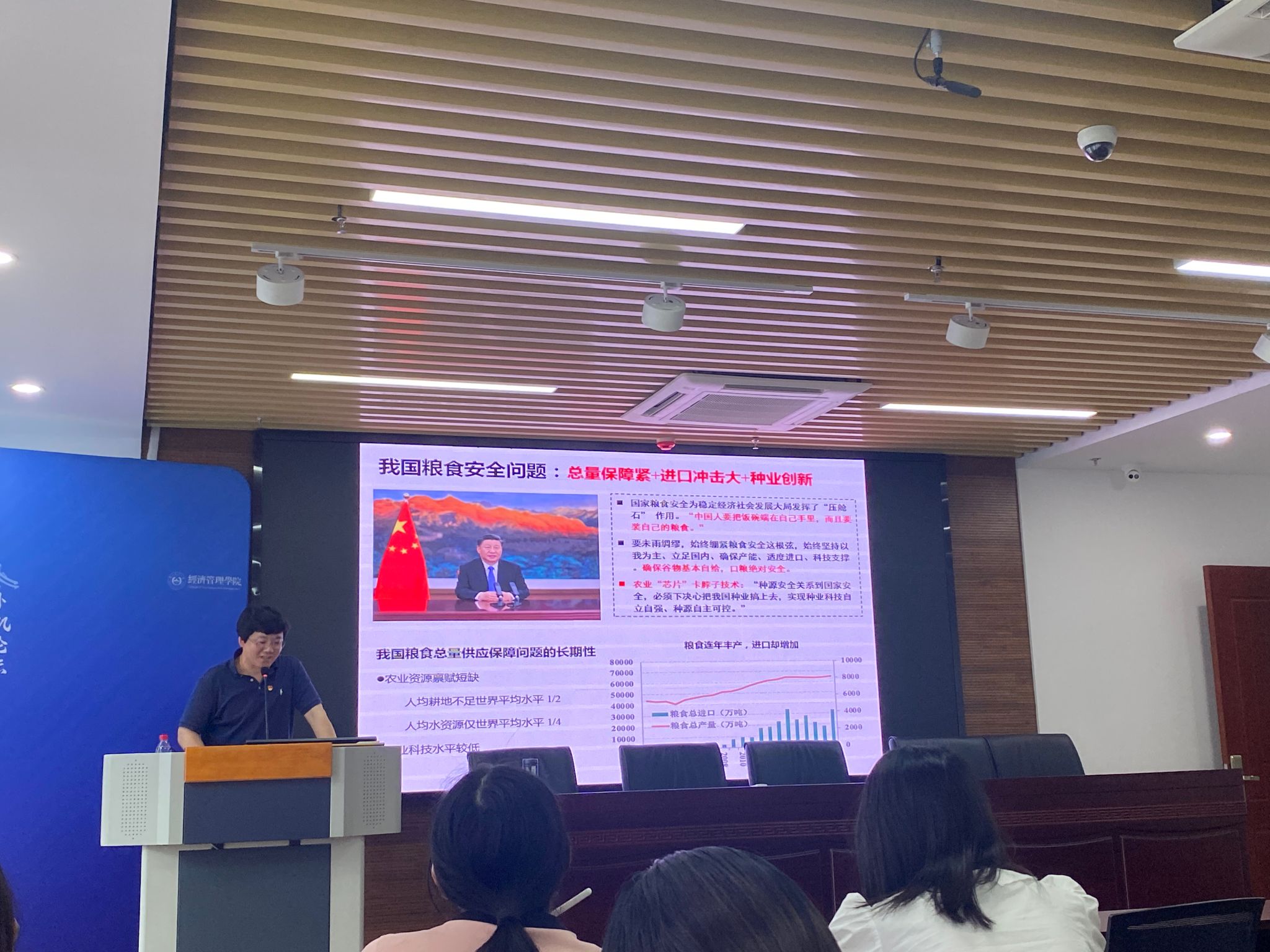 粮食安全是经济社会发展的压舱石,种子是粮食安全的基础。党的十八大以来,习近平总书记强调,加强良种技术攻关,靠中国种子来保障中国粮食安全。院党委副书记、院长徐志刚为联系的教师党支部和学生党支部讲授《粮食安全与种业振兴:技术VS制度》主题党课。