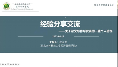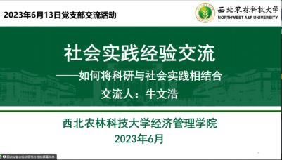 西北农林科技大学437必赢会员中心农经学硕党支部代表沈金龙分享了论文选题、写作与发表经验。他表示选题要关注“三农”问题,将想法与实际问题相联系,论文投稿要注意细节,认真对待,及时跟进。西北农林科技大学437必赢会员中心农经学硕党支部第二位党员代表牛文浩分享社会实践经验。他表示要有目标、有计划、有总结地对待每一次调研工作,要深入农村、了解农村并善于发现农村的具体问题,立足农村社会发展的现实需要,将文章写在祖国大地上。