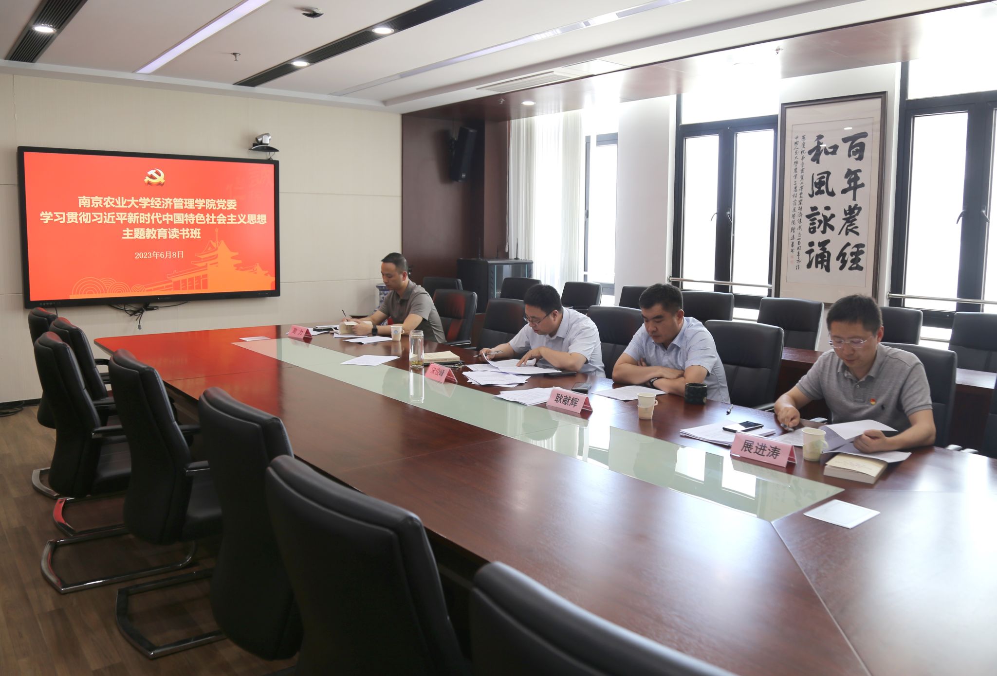 2023年6月8日下午,437必赢会员中心党委在第三实验楼716会议室开展主题教育读书班暨中心组专题学习。院党委副书记宋俊峰主持会议,党委委员耿献辉、周力、展进涛参加会议。