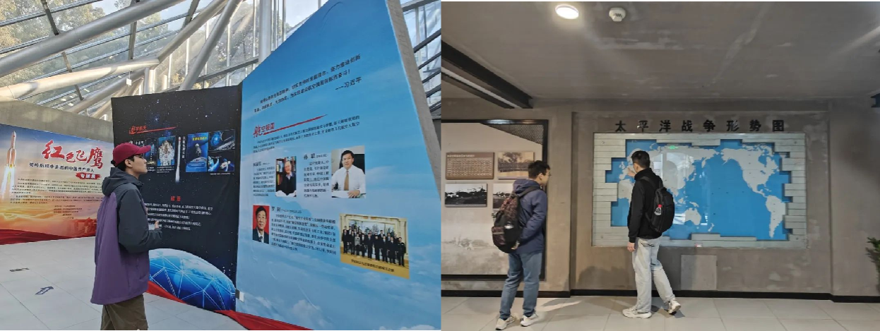 11月17日14:00,同学们进入南京抗日航空烈士纪念馆进行参观。纪念馆由"奋勇抗敌"、"国际援华"、"壮志凌云"和"缅怀先烈"四部分组成,同学们通过参观实物、文字、图片、影像等内容,了解到中、美、苏等国空军在中国大地上联合抗日的英勇历史,感受到了英勇先辈们保卫祖国、不惧艰难险阻的伟大抗争精神。