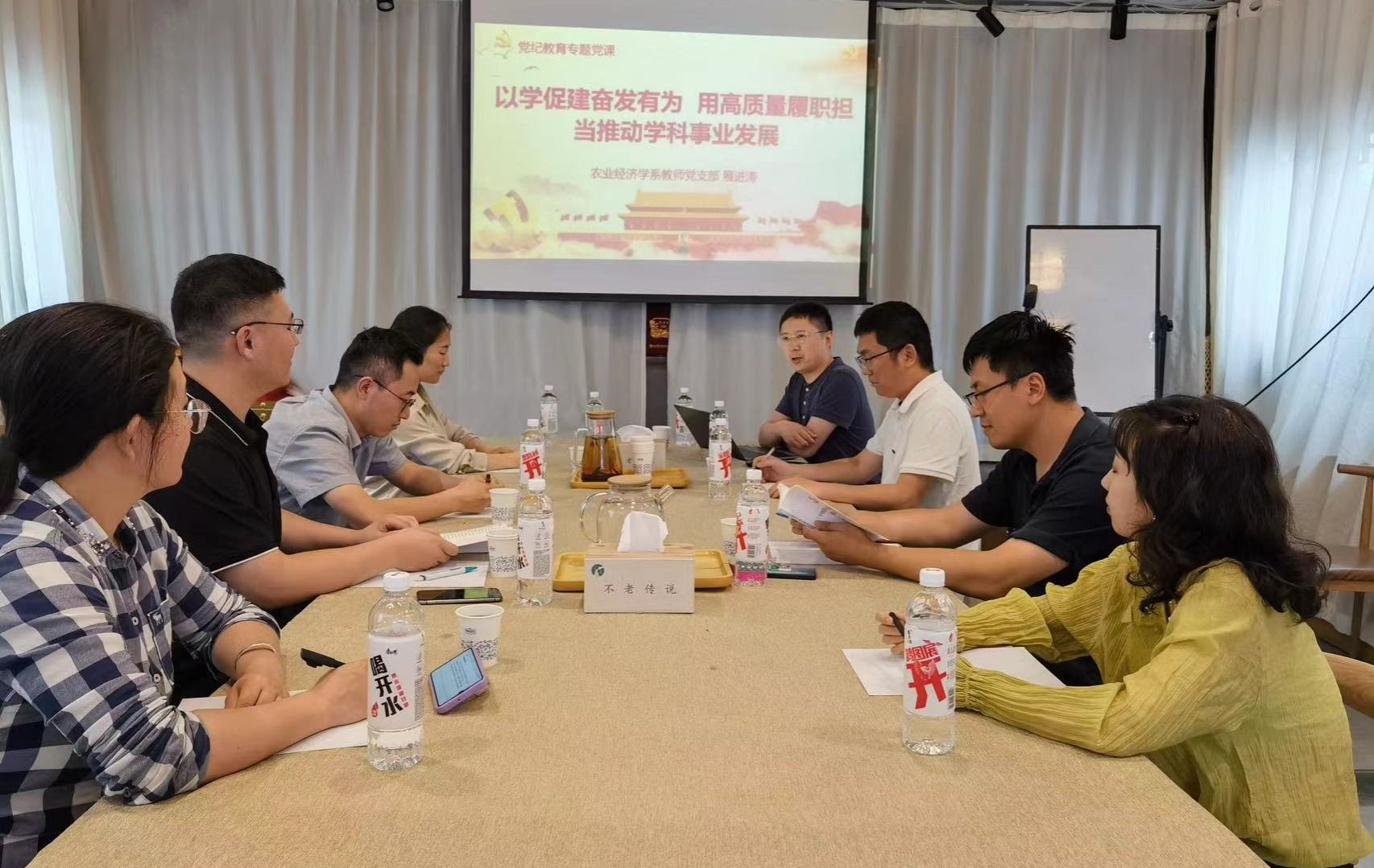 6月2日下午,农经系教师党支部召开了党员大会开展党纪理论学习。首先,党支部书记展进涛同志以“以学促建奋发有为 用高质量履职担当推动学科专业发展”为主题,为全体党员讲授党纪学习教育专题党课。同时,深刻解读了新修订《中国共产党纪律处分条例》的特点意义、内涵要义,并对农经系教师加强党纪学习教育提出要求。