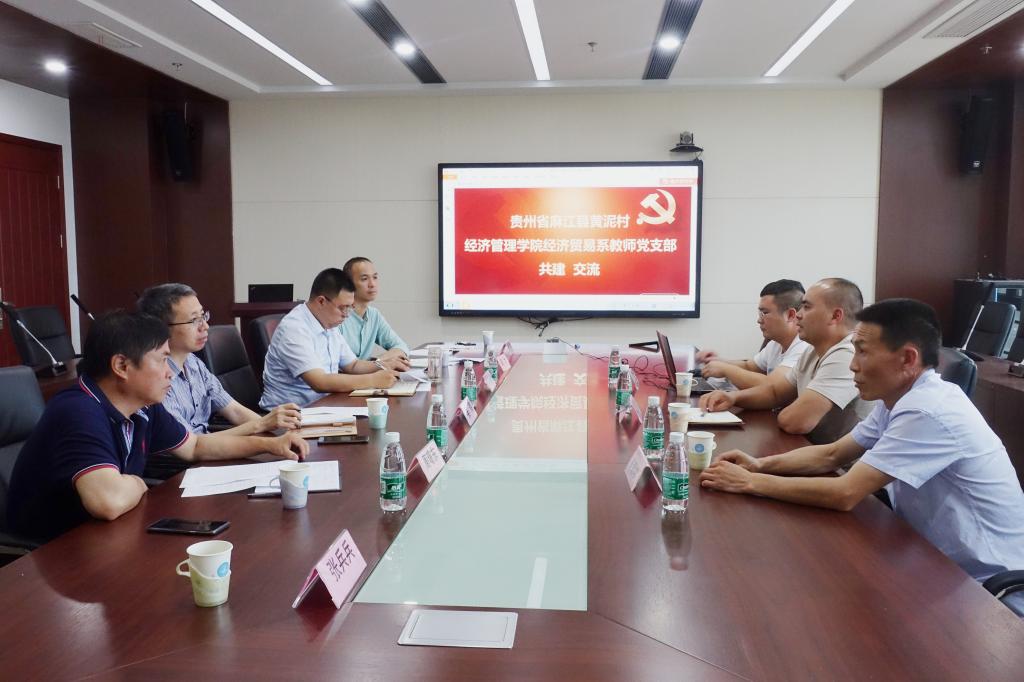 7月8日下午,经济贸易系“双带头人”工作室与黄泥村进行了共建交流。院党委书记姜海,副书记宋俊峰,资深教授、电商专家周曙东,经济贸易系党支部书记周力、委员张兵兵,党务秘书师慧参加了活动。会上,黄泥村支部书记蒙庆国、主任张朝学、驻村干部文涛系统介绍了黄泥村概况、资源禀赋、党建成效、脱贫致富的重点难点疑点。双方对今后以党建为龙头、多方面互助共建的合作方式内容,进行了深入的交流探讨。