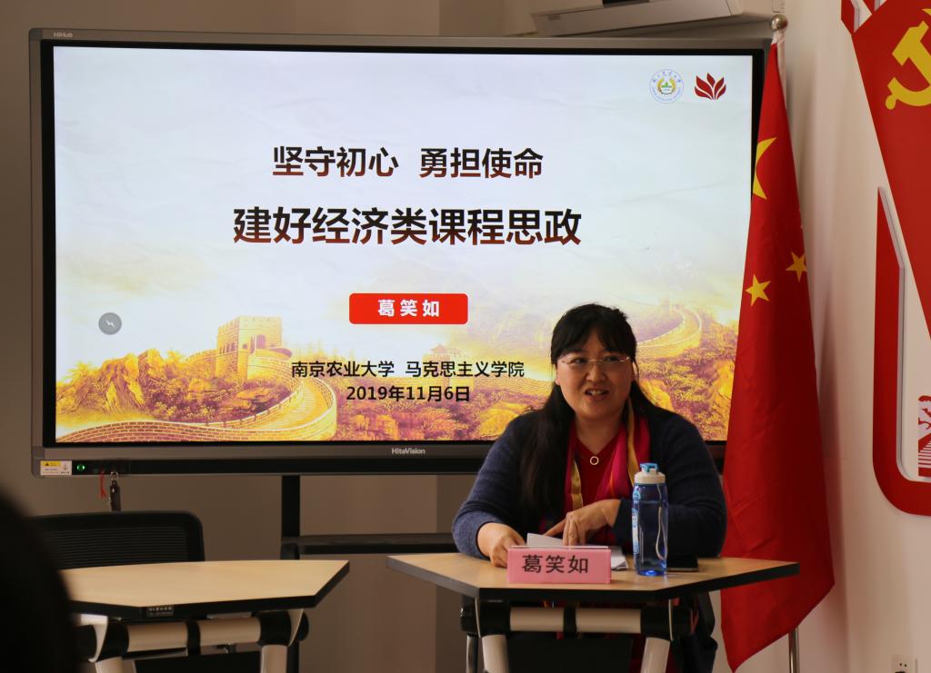11月6日下午,按照学校统一部署要求、学院“不忘初心、牢记使命”主题教育工作方案和党员集中轮训计划,我院特邀马克思主义学院葛笑如教授做“坚守初心、勇担责任,建好经济类课程思政”专题报告。报告由学院党委书记姜海主持。