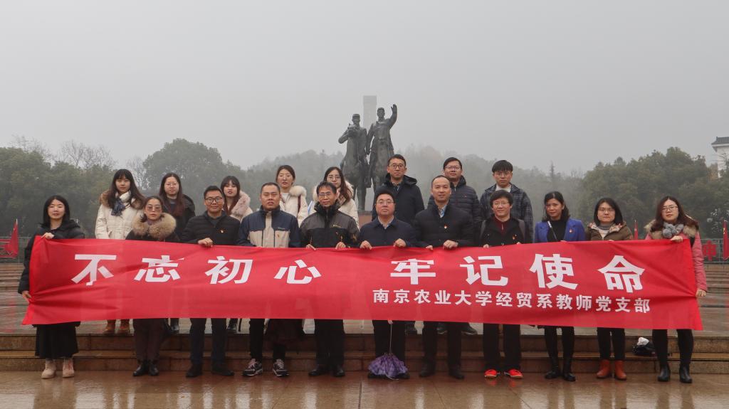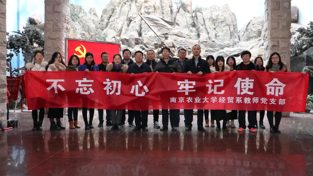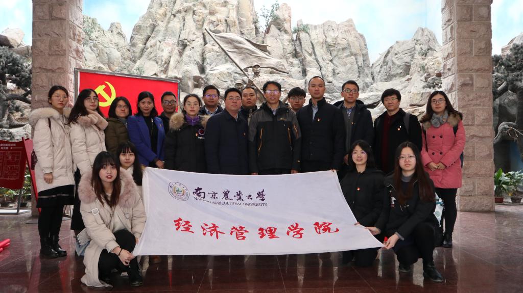 为扎实推进“不忘初心、牢记使命”主题教育,充分发挥“双带头人”教师党支部上下“联动”、两手“牵动”的重要作用。2019年12月21日,437必赢会员中心经济贸易系教师党支部赴镇江句容参观茅山新四军纪念馆、瞻仰苏南抗战胜利纪念碑,并召开“经世济民,摆脱贫困”经济学思政公开课。学院党委书记姜海、副书记宋俊峰和经济硕士研究生第三支部、电子商务本科党支部学生党员代表参加活动。