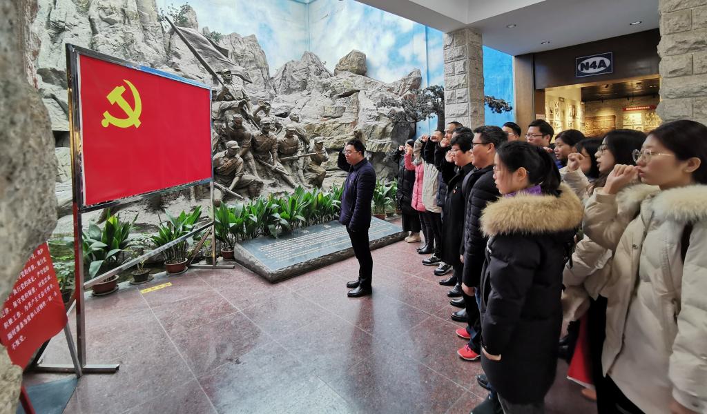 上午,一行来到爱国主义教育基地——茅山新四军纪念馆参观学习。在这里,师生党员同志共同参观了“苏南人民奋起抗击日本侵略军”、“茅山抗日根据地的开辟”、“茅山新四军东进北上”、“苏南抗日根据地的艰苦坚持”以及“苏南人民夺取抗日斗争的胜利”等主题展。宋俊峰带领全体党员同志面对党旗,重温入党誓词。