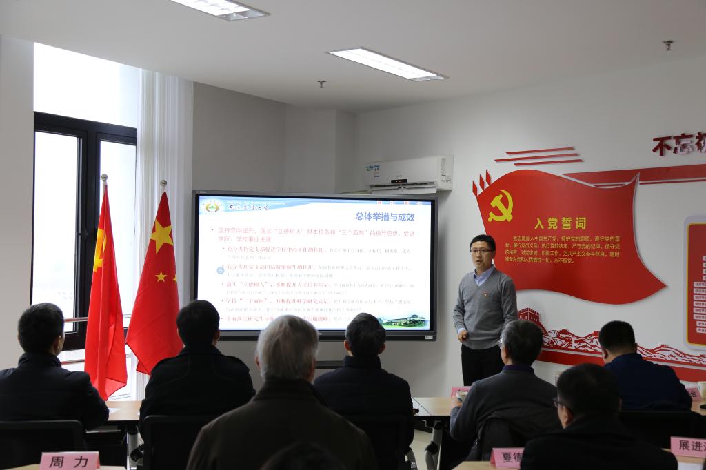 2020年1月6日下午,437必赢会员中心党委组织召开2019年度党支部书记抓党建述职评议考核会议。校第四督查组成员学工处副处长黄绍华、组织部李云锋、人文学院党务秘书刘婷婷参会督查。院党委书记姜海、副书记宋俊峰、党委委员钟甫宁、党委委员副院长易福金参会评议。学院23个党支部全部进行现场述职。