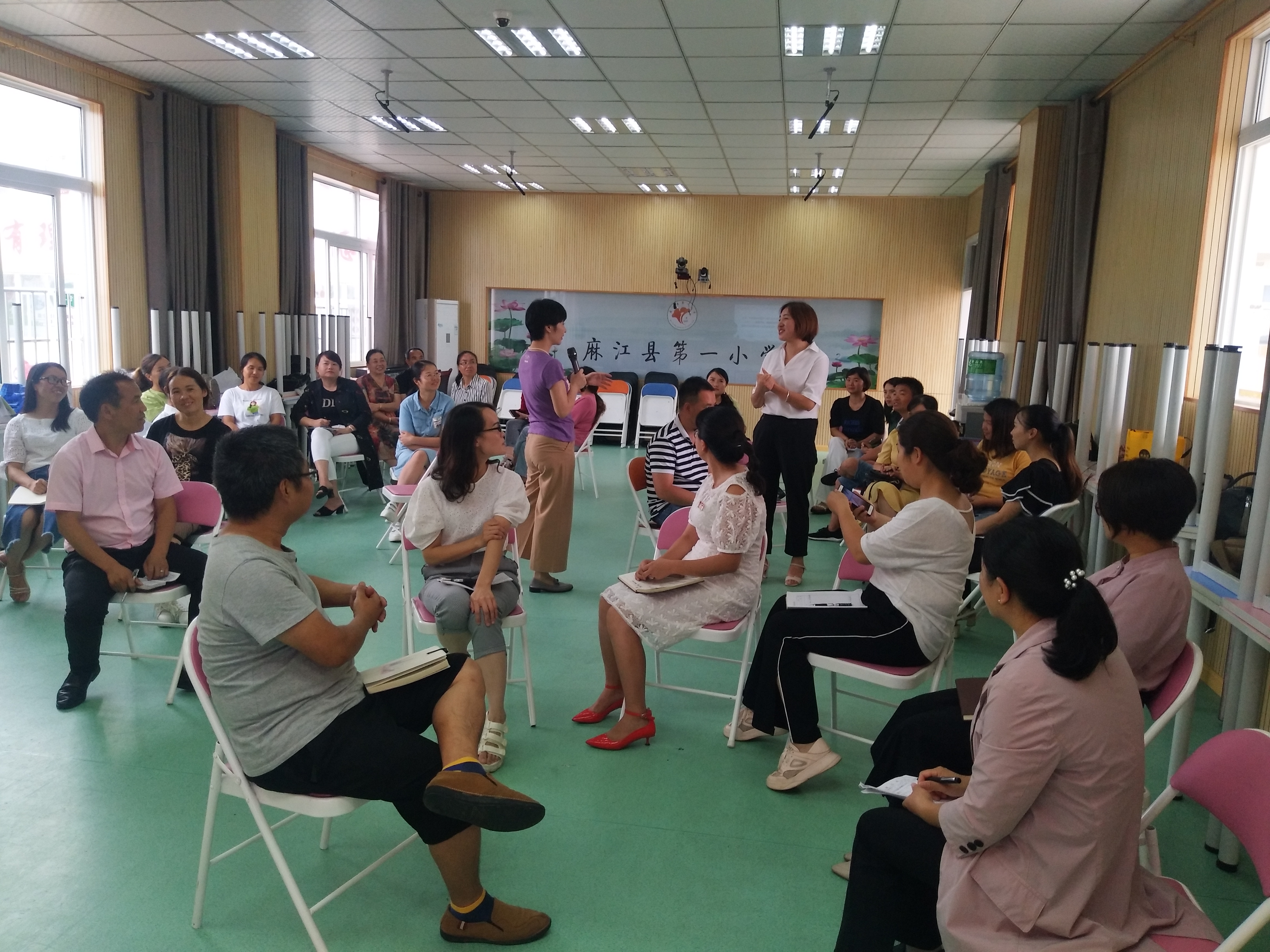 开班仪式后,学院党委委员、经济贸易学系教师党支部书记周力课题组等特邀中国科学院心理研究所博士后黄臻为30余名小学教师做成长型思维初期培训。对小学教师代表的成长型思维培训旨在引导教师以启发式的思维教育孩子,让孩子以积极的态度处理生活和学习遇到的困难,最终尝试在“扶贫先扶智”方面迈出新的步伐。