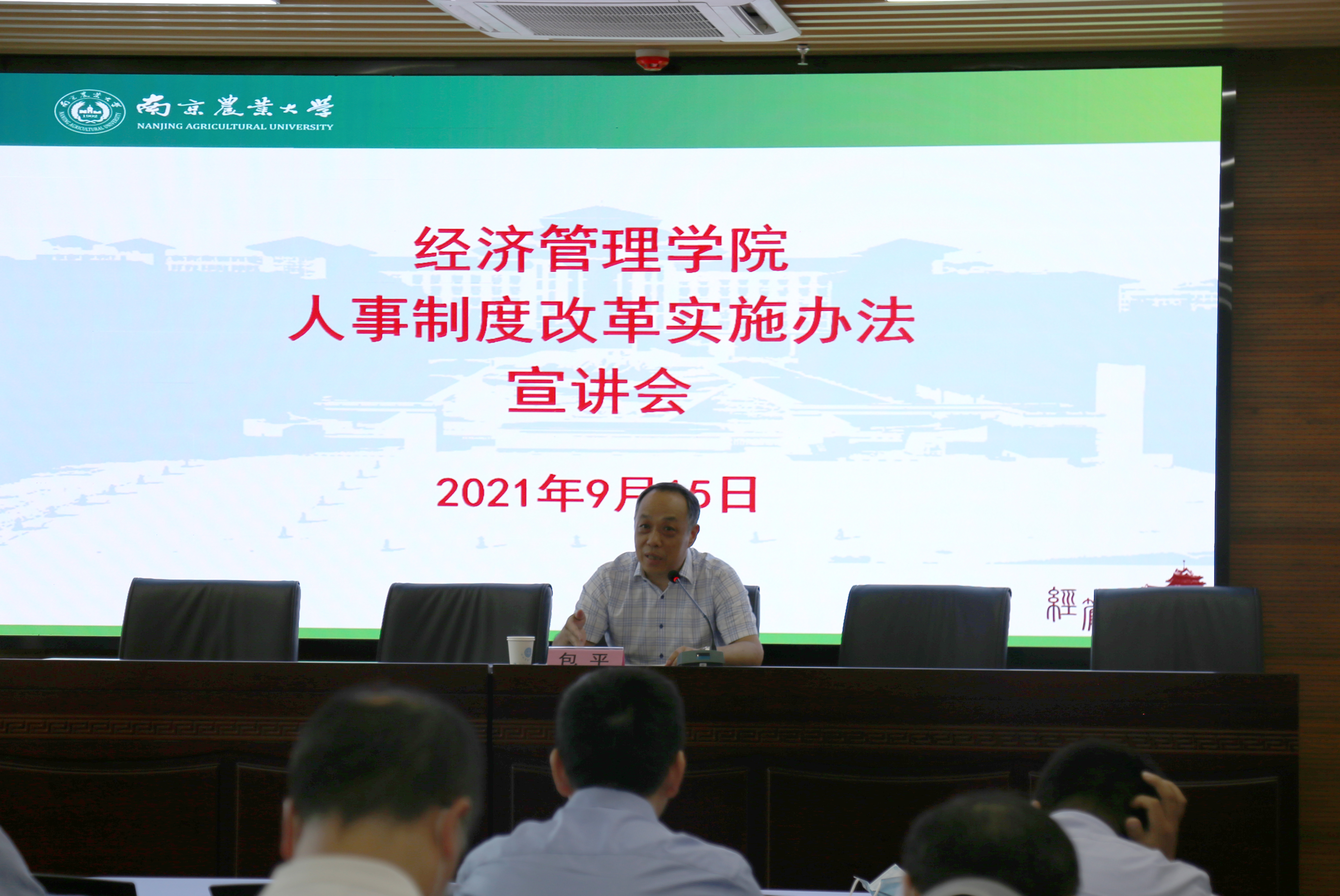 9月15日下午,学院召开人事制度改革实施办法宣讲会。校人力资源部部长、人才办主任包平出席会议,学院领导班子及全体教职员工参加了会议,会议由院长朱晶主持。