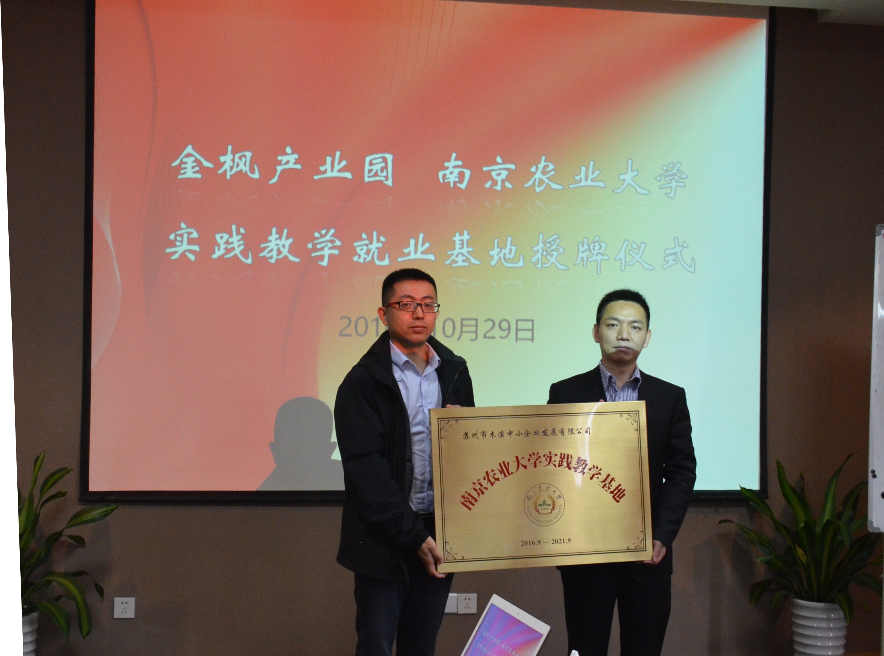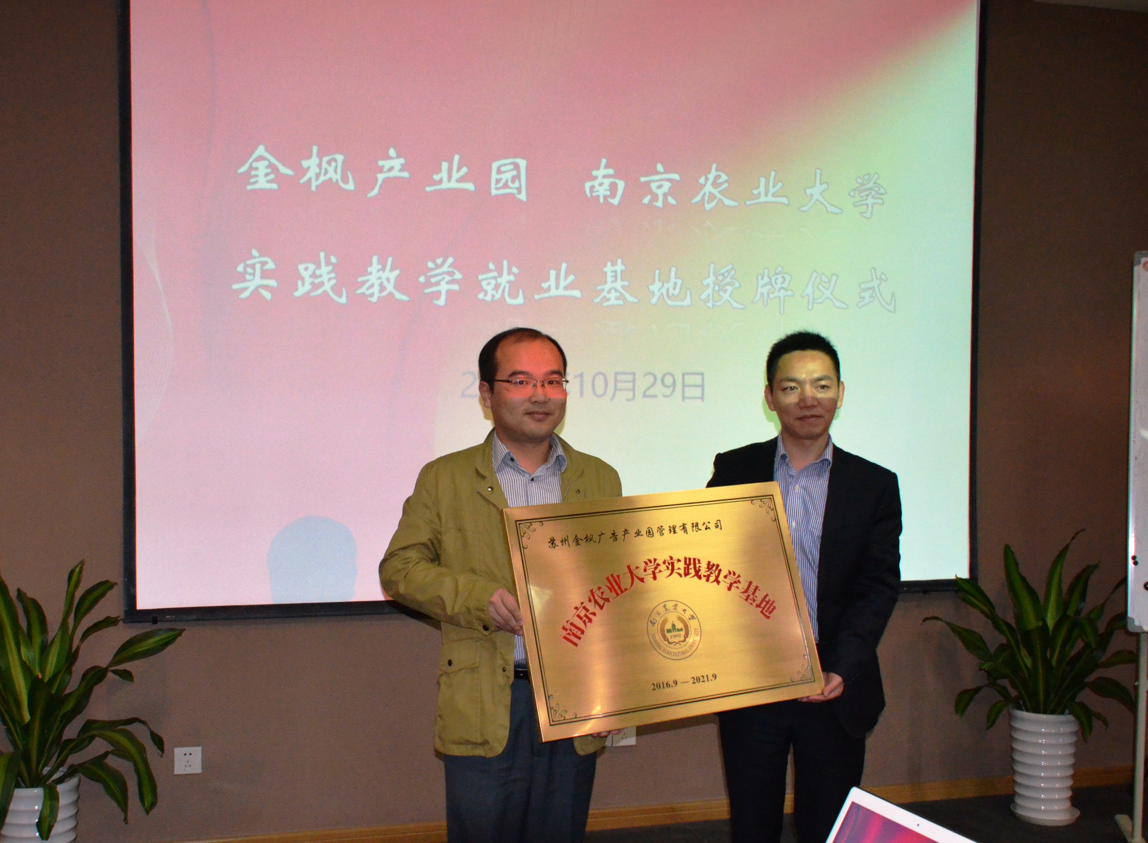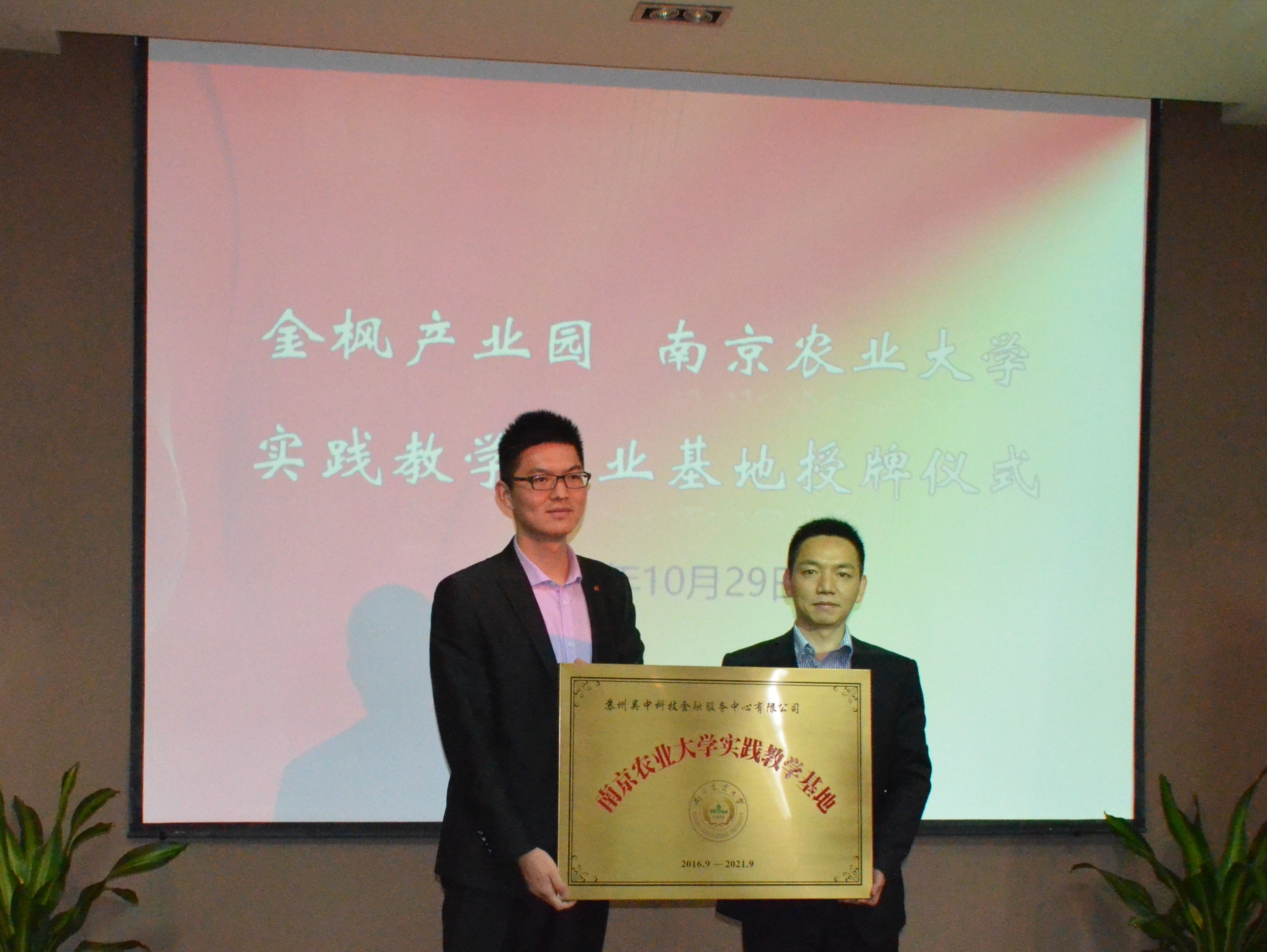10月29日,bwi437官网—金枫产业园实践教学就业基地签约仪式在苏州市金枫产业园举行。437必赢会员中心副院长林光华,管理系系主任何军,管理系教师丁振强、吉小燕以及14级管理系本科生参加了授牌签约仪式。金枫创业投资有限公司总经理高新文、金枫产业园各园区负责人出席了基地签约授牌仪式。