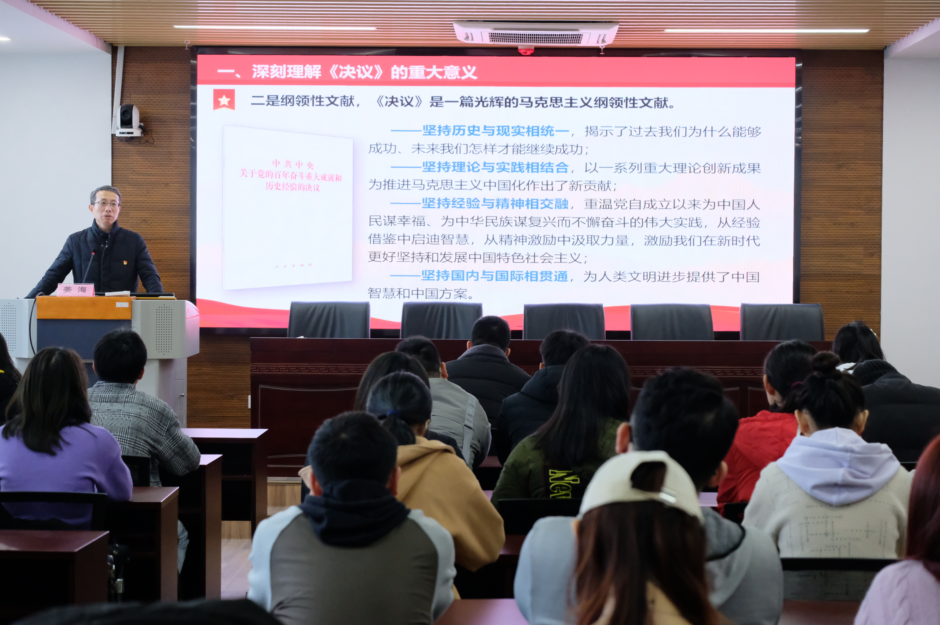 姜海从深刻理解《中共中央关于党的百年奋斗重大成就和历史经验的决议》的重大意义、党百年奋斗的重大成就、中国特色社会主义新时代的历史性成就和历史性变革、党百年奋斗的初心使命、党百年奋斗的历史教导我们要不忘党百年奋斗的初心使命、党百年奋斗的历史意义和历史经验、以史为鉴、开创未来的重要要求等六个方面对党的十九届六中全会做了详细解读,结合理论学习,号召支部党员增强专业认同感、民族认同感、国家自豪感。