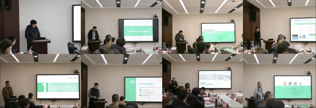 徐志刚教授、王学君教授、田曦教授、曹历娟老师、周力教授、谢超平副教授、虞祎副教授、张兵兵副教授分别作《国贸专业学生职业需求及素养》《教师发展与教学团队建设》《课程教材资源开发》《实验实训条件建设》《大学生创新创业训练》《国内外教学交流合作》《教育教学研究与改革》《立德树人与课程思政》报告。