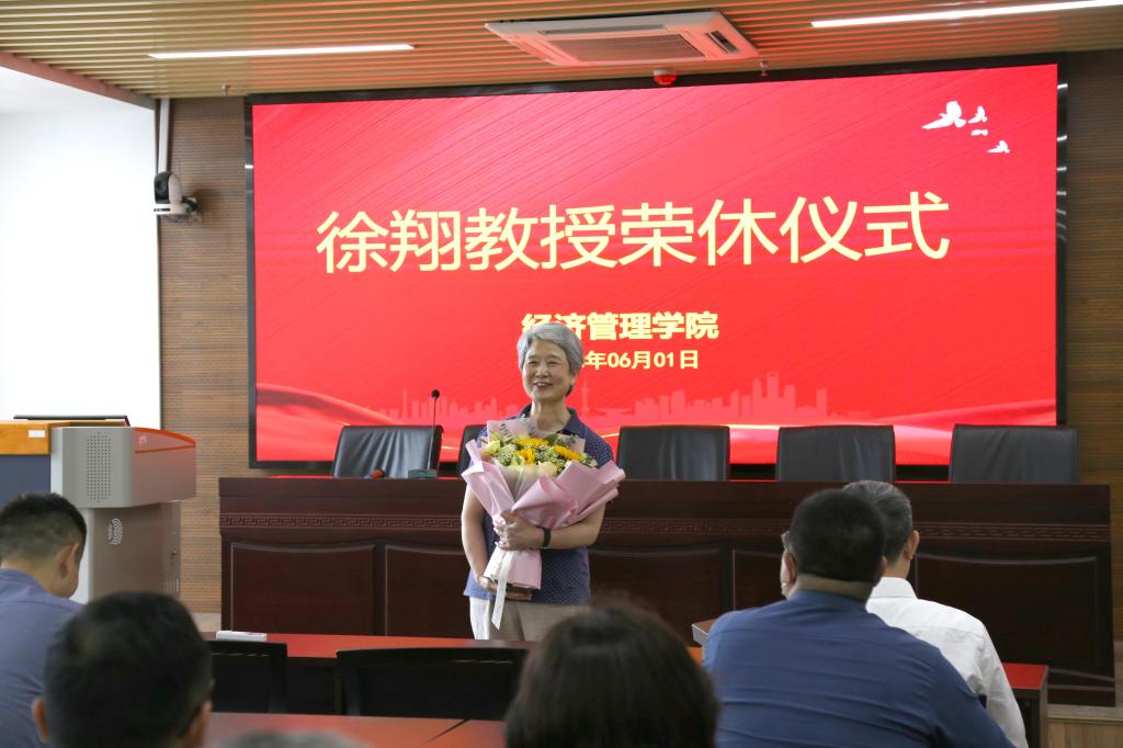 2022年6月1日下午,学院于第三实验楼706报告厅召开教职工大会。会上,举办了学院徐翔教授荣休仪式。仪式由院长朱晶主持。
