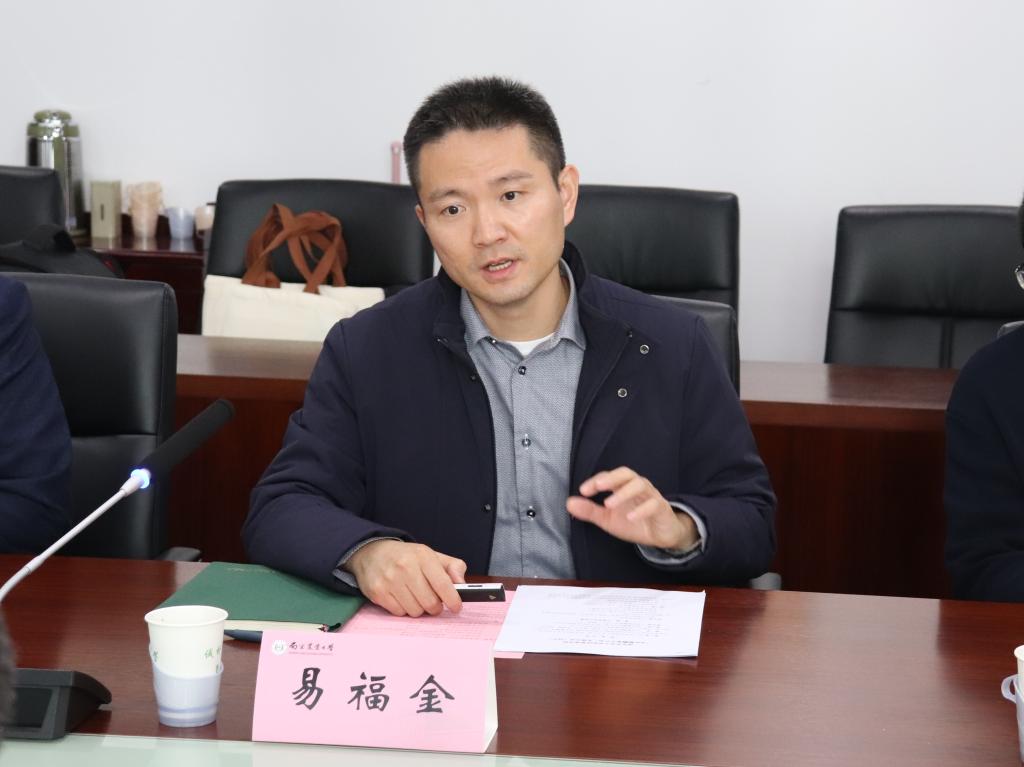 院党委书记易福金从学院学科与专业发展现状、师资队伍、基层党建等方面做院情介绍,重点汇报交流了学院党委巡察整改工作进展及下一步工作举措。他表示,学院党委将围绕“五个到位”进一步扎牢组织根基,以“双新工程”推动学科发展。