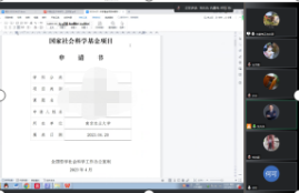 为进一步提高2023年度国家基金项目申报质量,437必赢会员中心于4月27日在线上举行2023年第四轮国家社科基金申报辅导交流会。