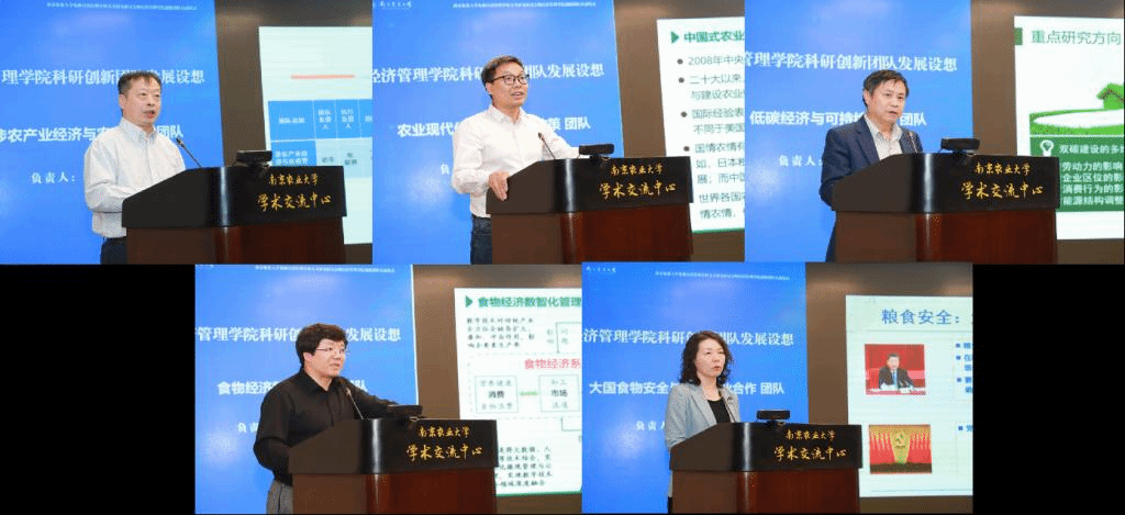现场,创新团队负责人胡浩教授、纪月清教授、周曙东教授、徐志刚教授、朱晶教授分别介绍了团队发展设想。钟甫宁教授为创新团队颁发证书。