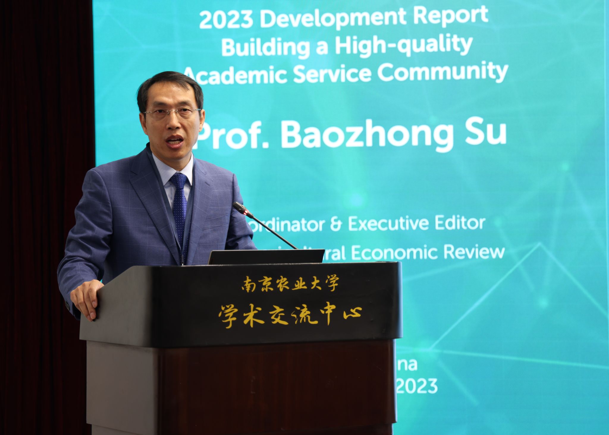 CAER编辑协调人兼执行主编苏保忠教授做了题为“构建高质量的学术服务社区”的期刊年度发展报告。他详细介绍了一年来期刊的重点工作以及所取得的重要进展,并对CAER期刊的未来发展进行了展望。随后,他还主持了期刊的年度颁奖典礼。辛贤教授、樊胜根教授、陈志钢教授和王红教授共同为CAER“2022 Outstanding Paper”和“2022 Highly Recommended Papers”获奖者颁发证书。