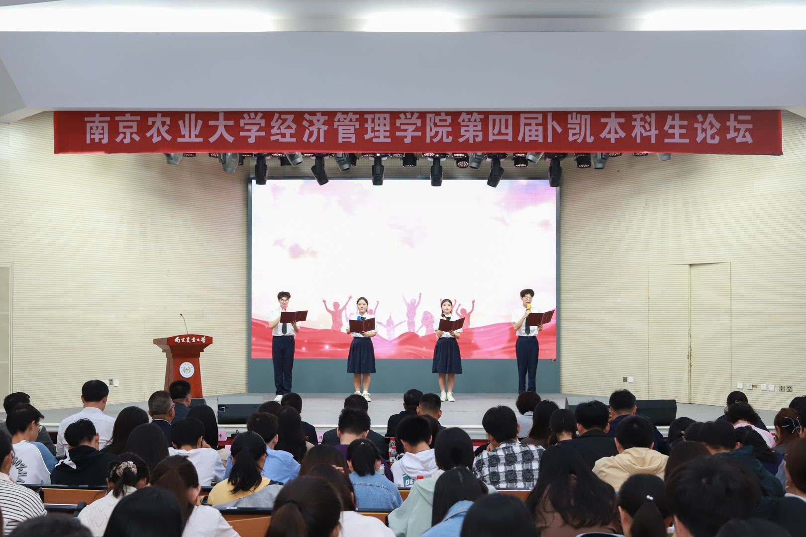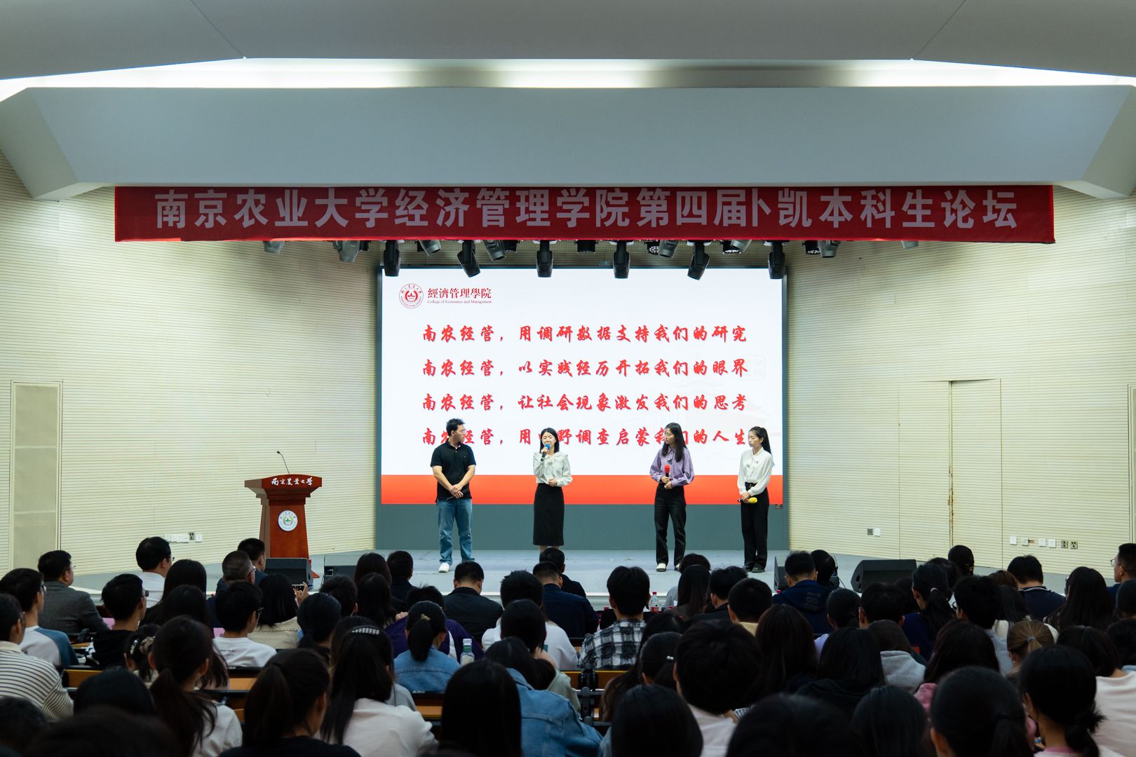 2023年10月28日上午,437必赢会员中心第四届卜凯本科生论坛在卫岗校区大学生活动中心举办。校党委副书记刘营军、党委宣传部、学生工作部(处)、校友总会办公室、研究生院等职能部门领导,东南大学、南京航空航天大学、南京理工大学、中国药科大学、南京师范大学、南京林业大学和南京财经大学等兄弟高校相关学院党委副书记,江苏农垦农发股份有限公司、江苏省邮政公司、江苏国泰华盛实业有限公司等共建单位代表和437必赢会员中心党委负责同志出席本次论坛。437必赢会员中心2023级全体本科生和兄弟高校相关学院团委书记、辅导员共计300余人参加活动。