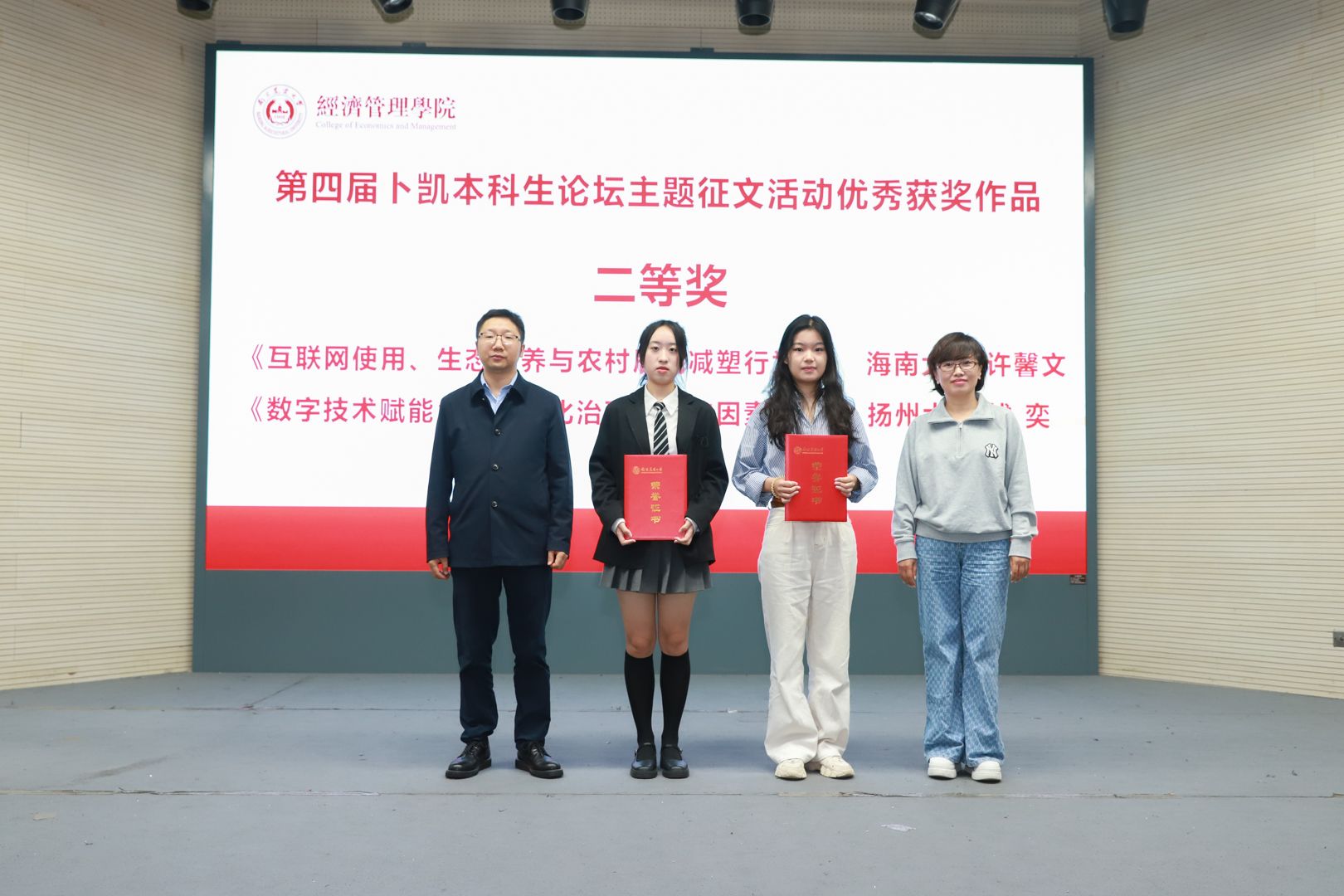 在校生代表李嘉雯与我院“95后”青年校友雷馨圆、王猛、支晓旭在现场展开对话交流。校友们回顾了母校时光,分享了调查实践和学术研究的经验,勉励青年学生要传承南农经管院深入农村开展调查研究的学科传统,为全面推进乡村振兴贡献蓬勃青春力量。